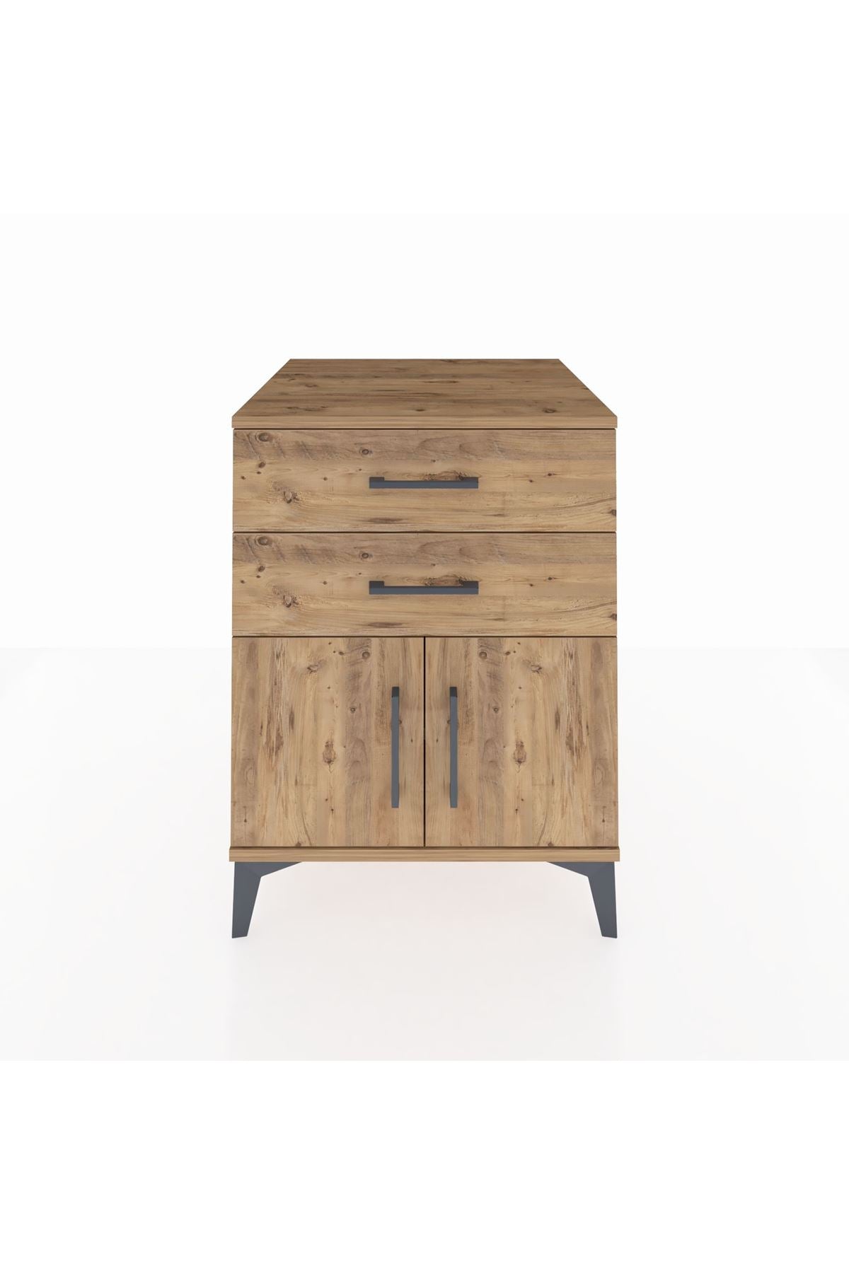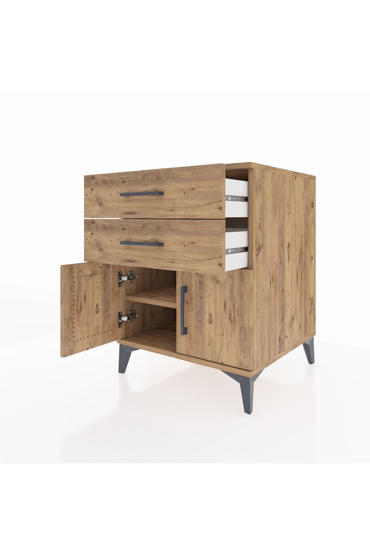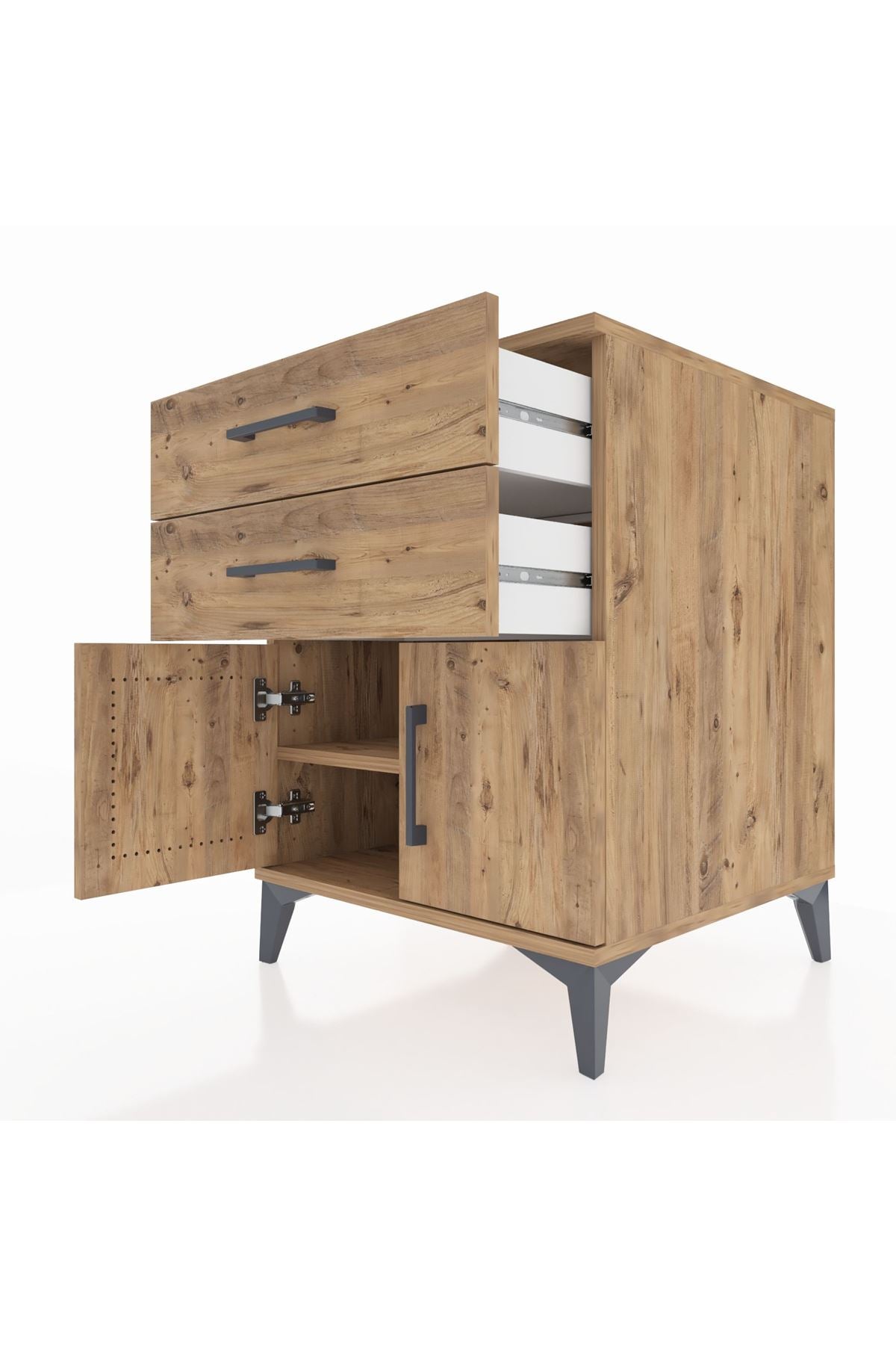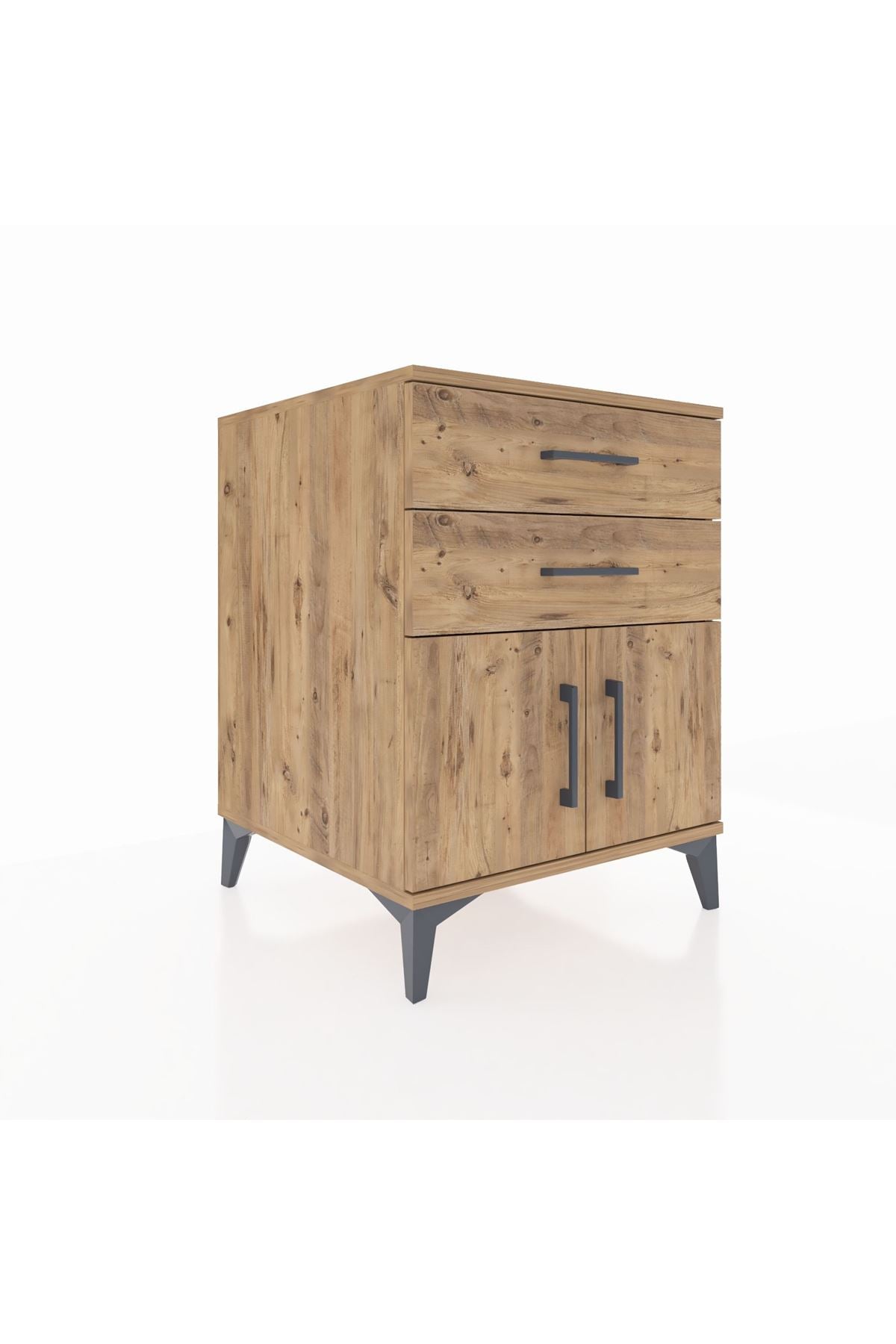 Kronos Komodin Tek Raflı 2 Çekmeceli 2 Kapaklı 60x59x80 Çam-Çam