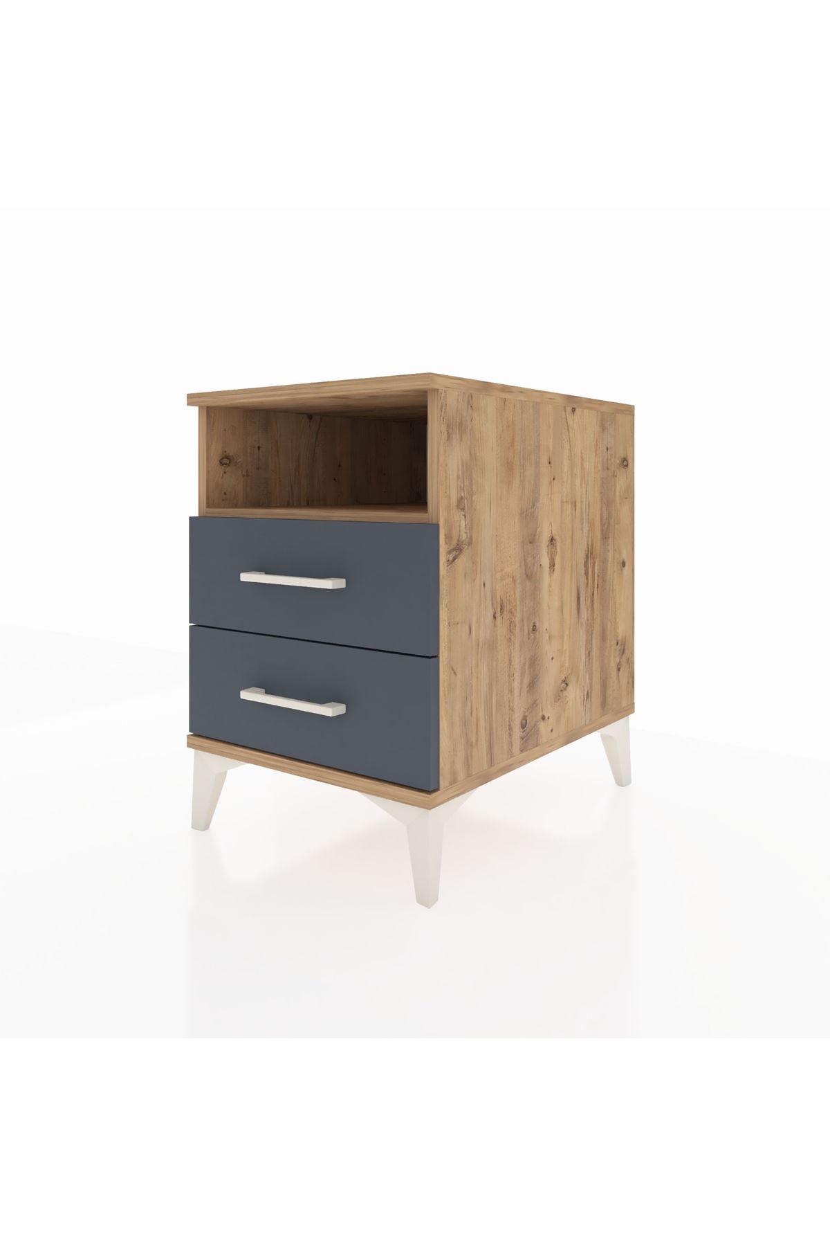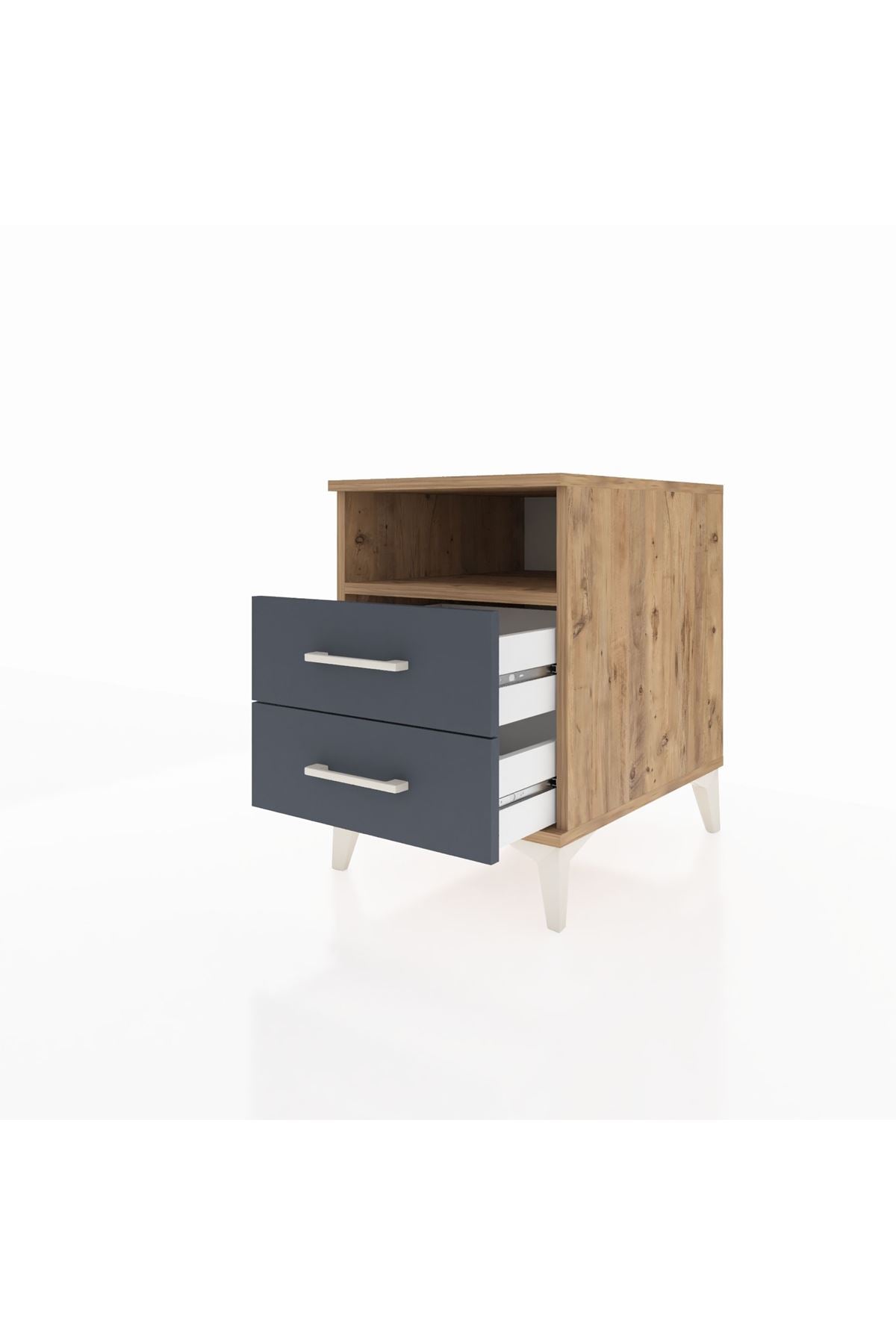 Kronos Komodin Tek Raflı 2 Çekmeceli 44x59x64 Çam-Antrasit