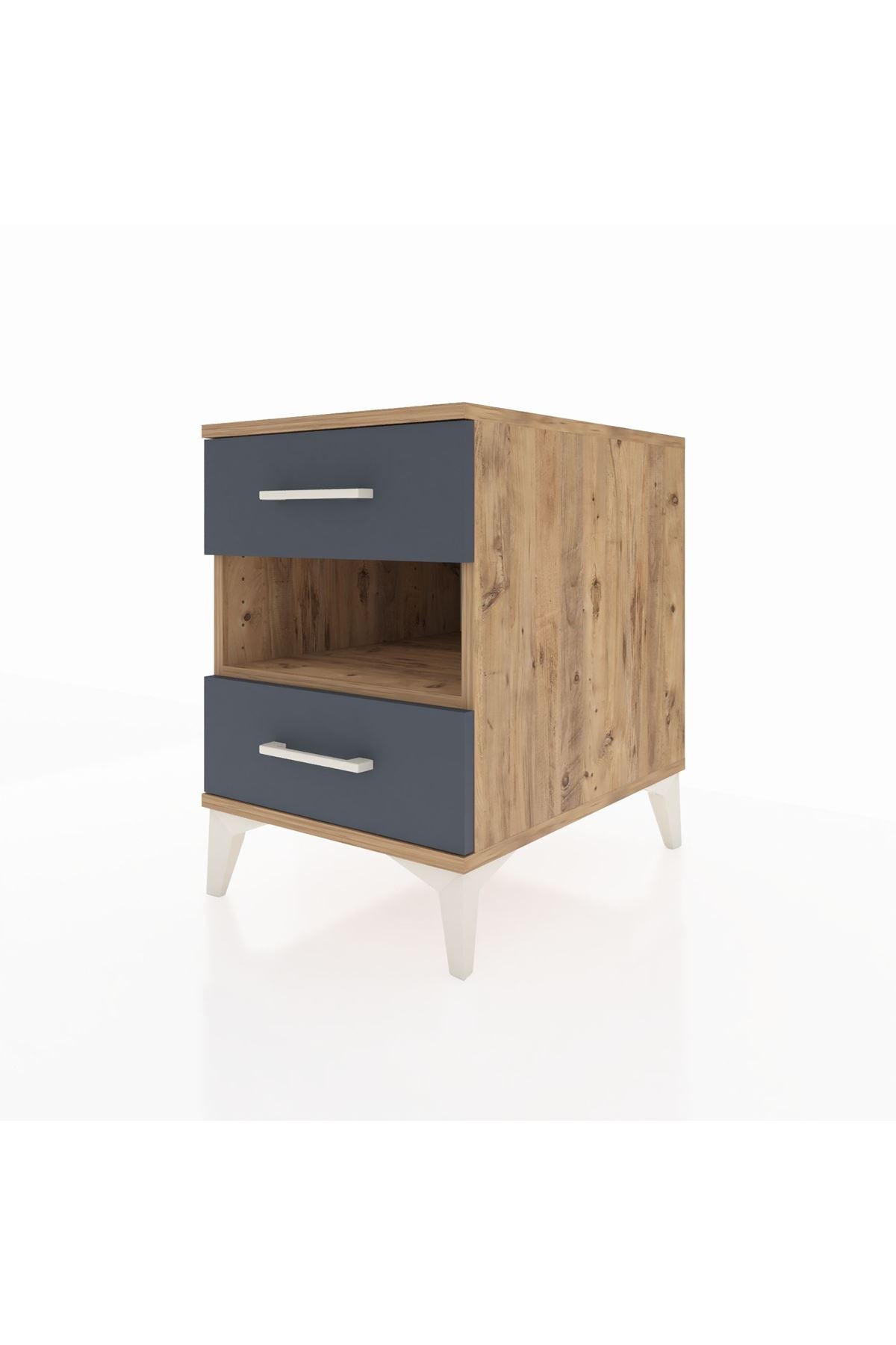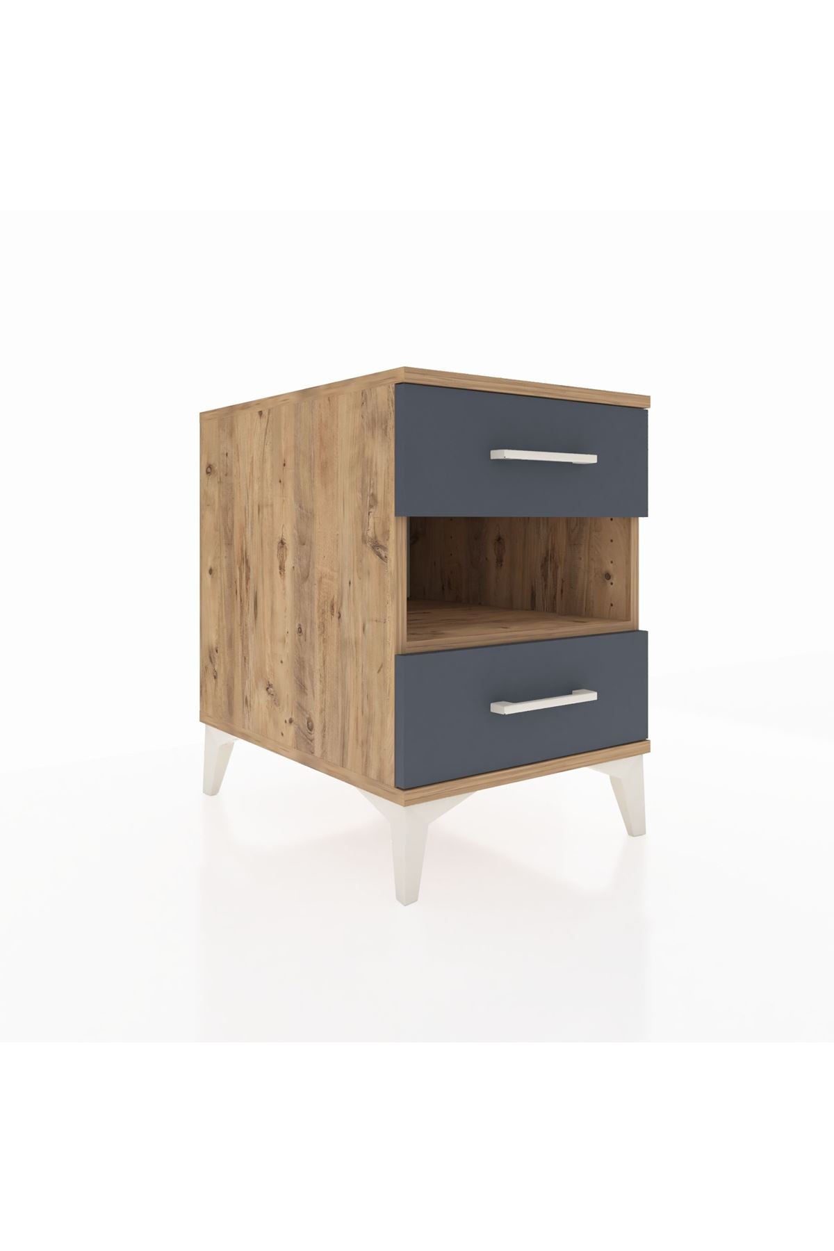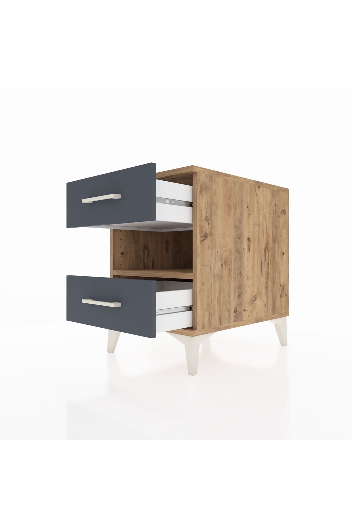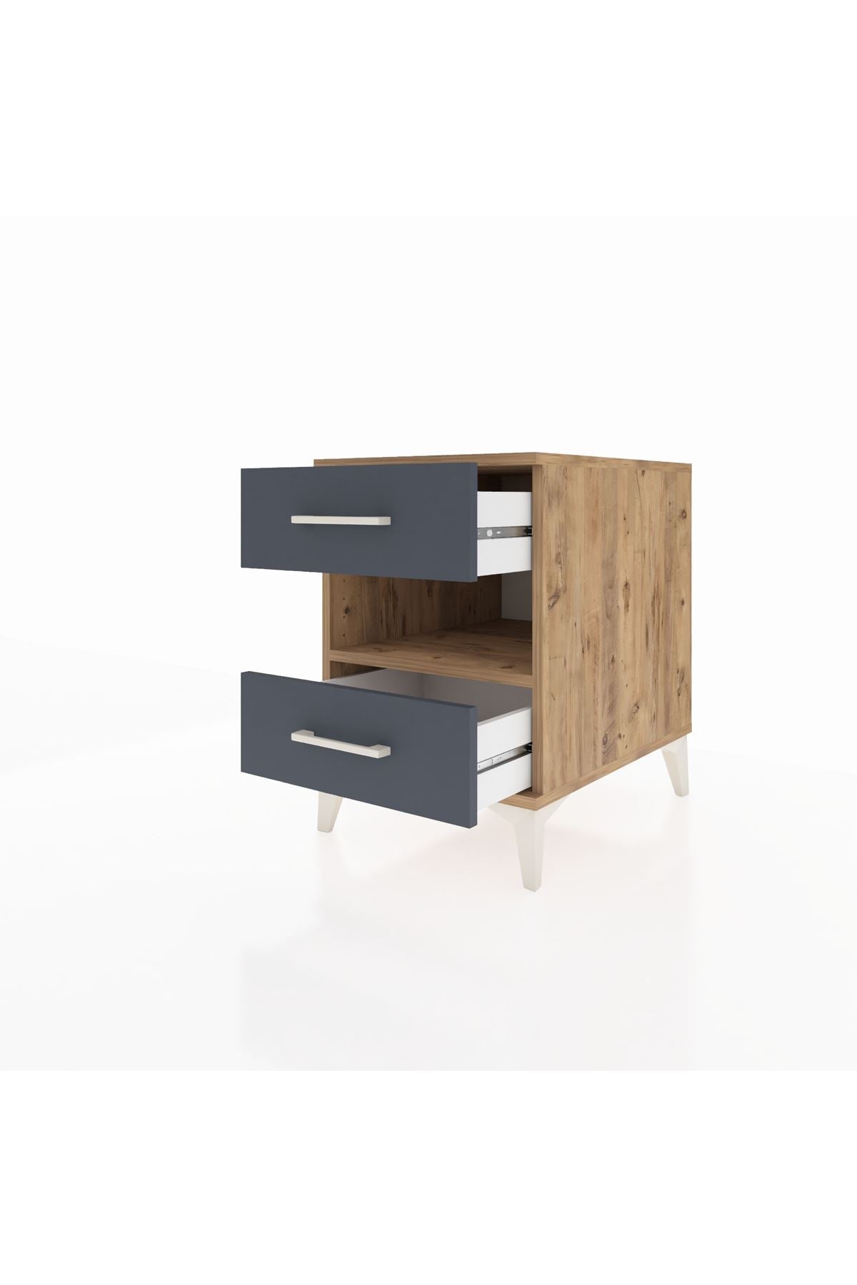 Kronos Komodin Tek Raflı 2 Çekmeceli 44x59x64 Çam-Antrasit