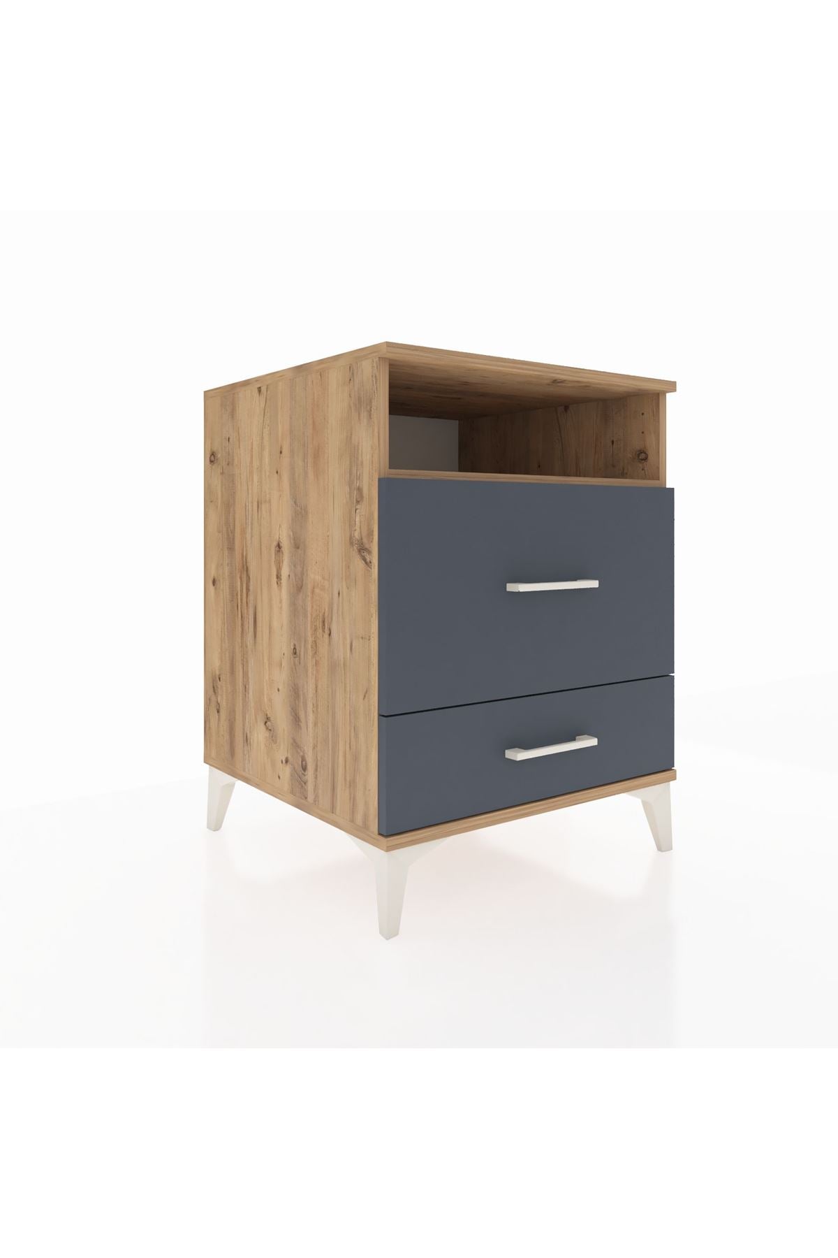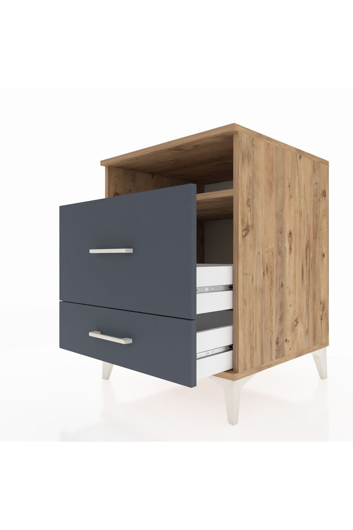 Kronos Komodin Tek Raflı 2 Çekmeceli 60x59x80 Çam-Antrasit