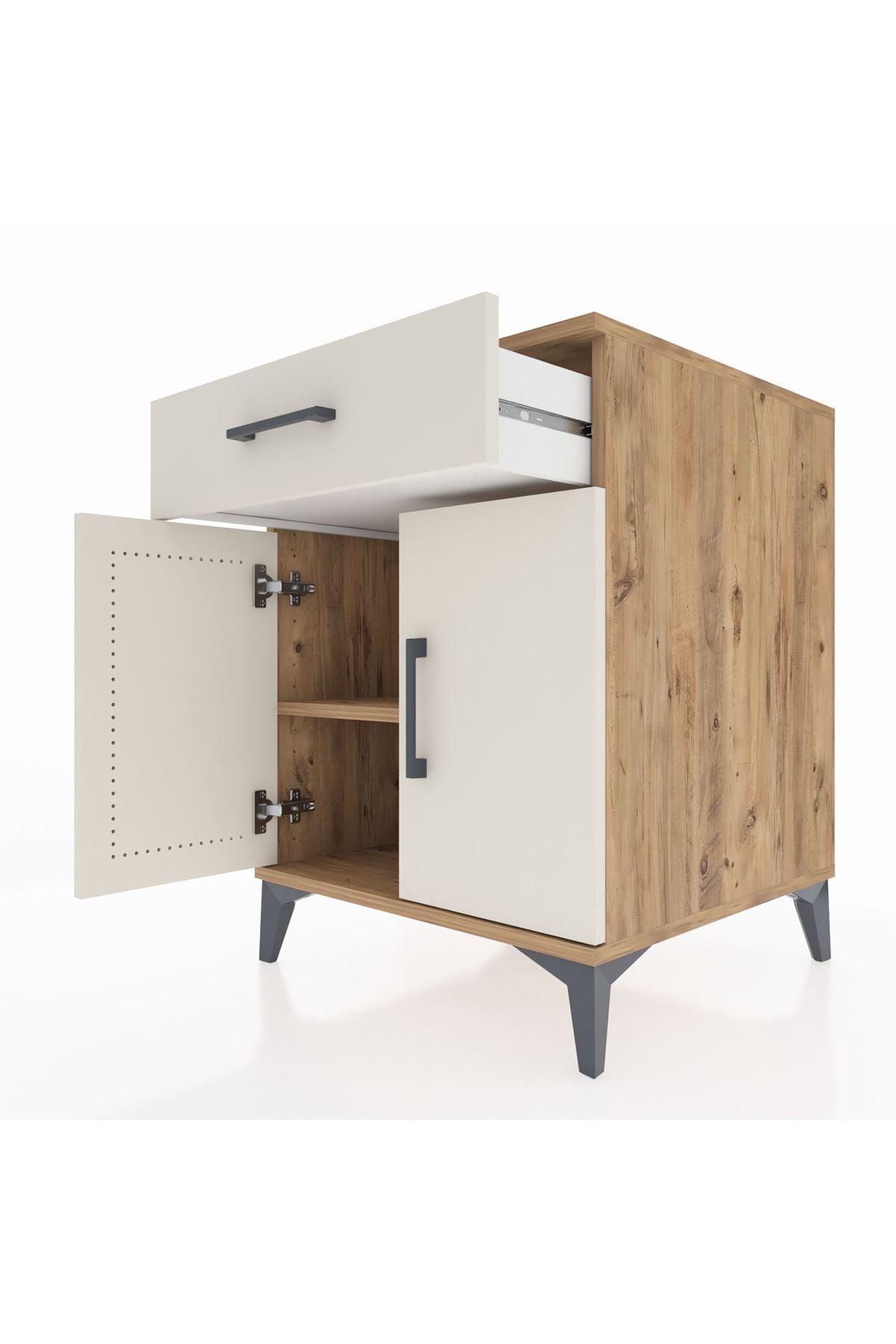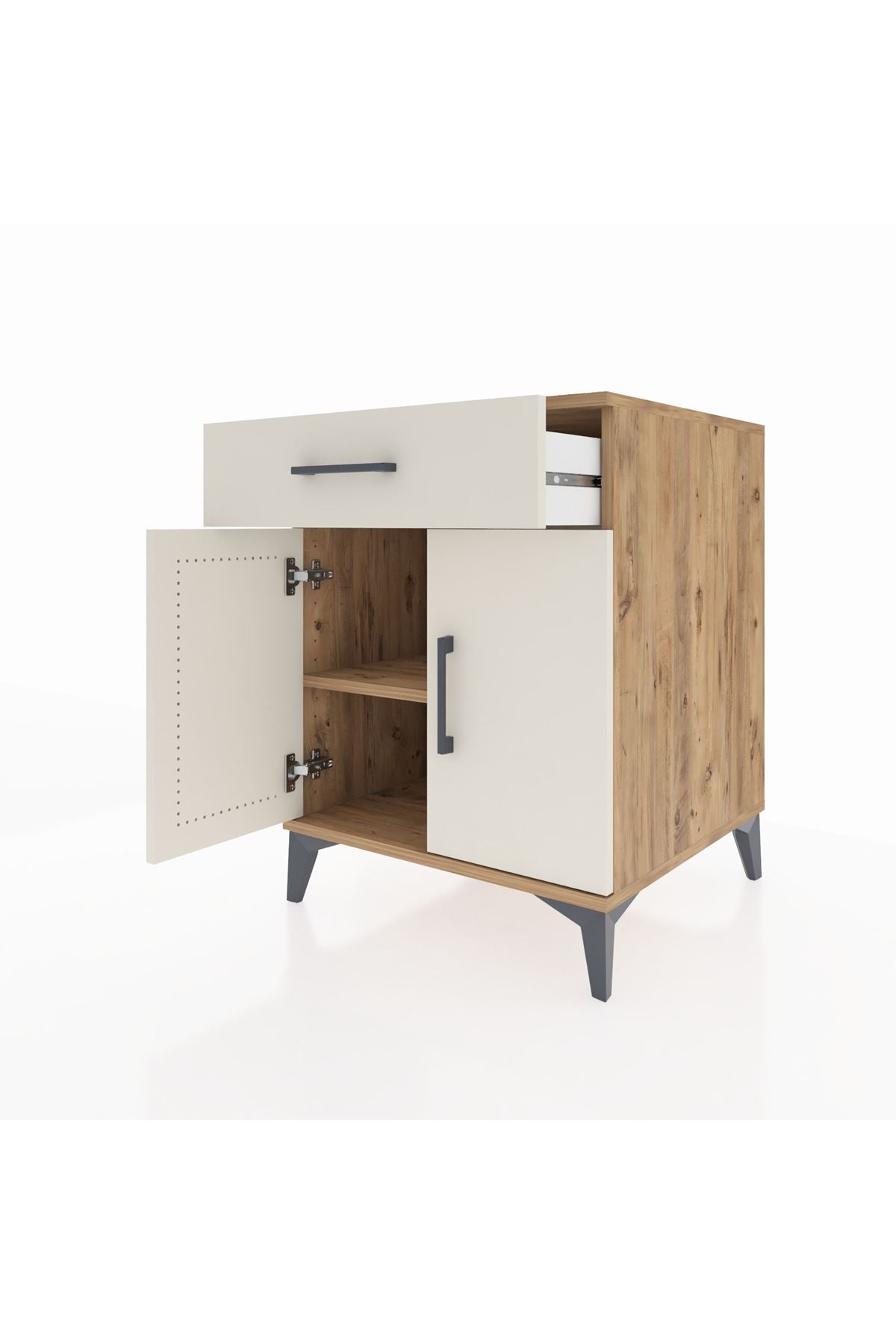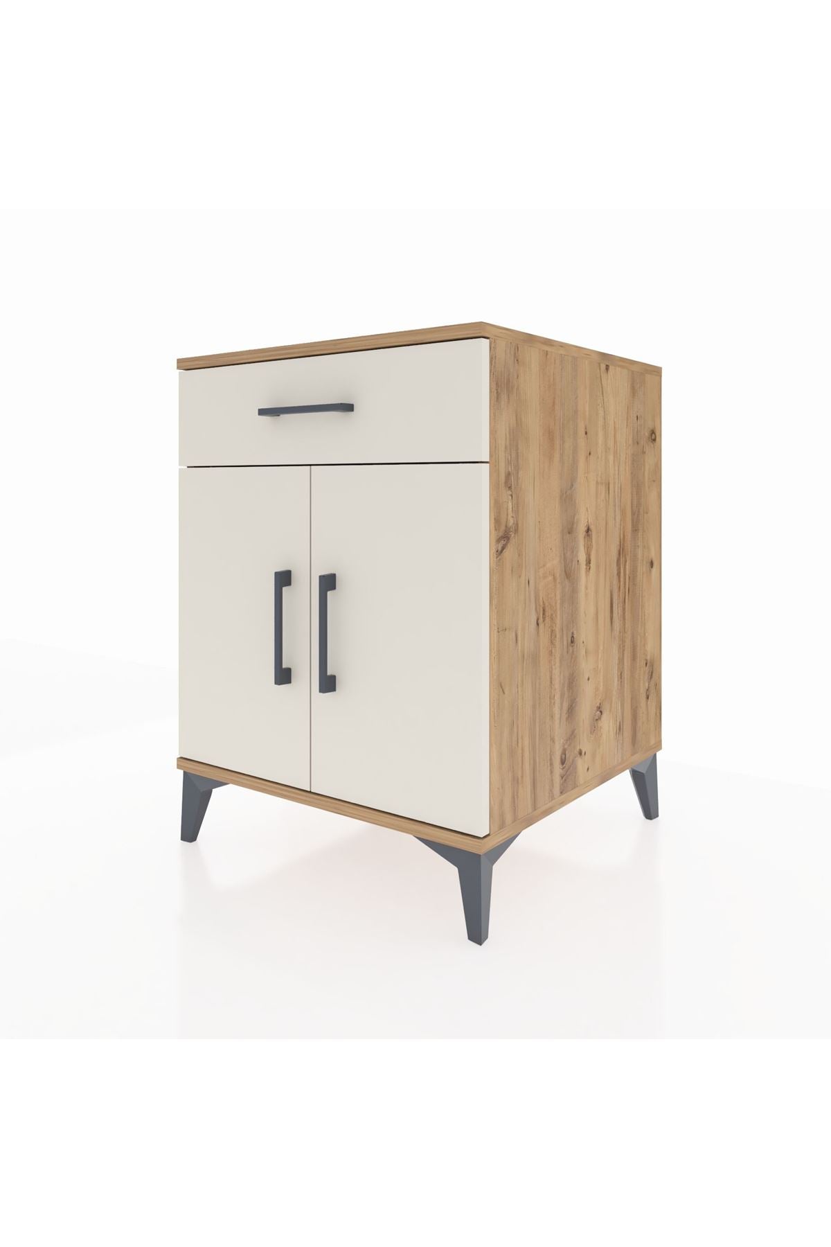 Kronos Komodin Tek Raflı Tek Çekmeceli 2 Kapaklı 60x59x80 Çam-Aytaşı