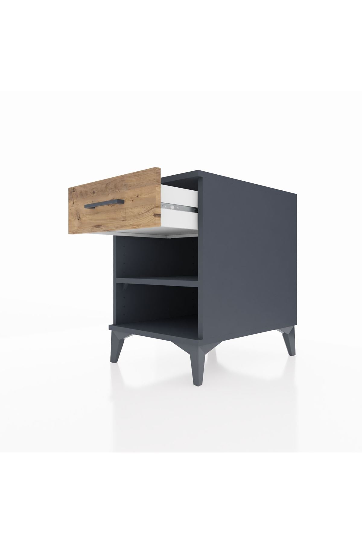 Kronos Komodin Tek Raflı Tek Çekmeceli 44x59x64 Antrasit-Çam