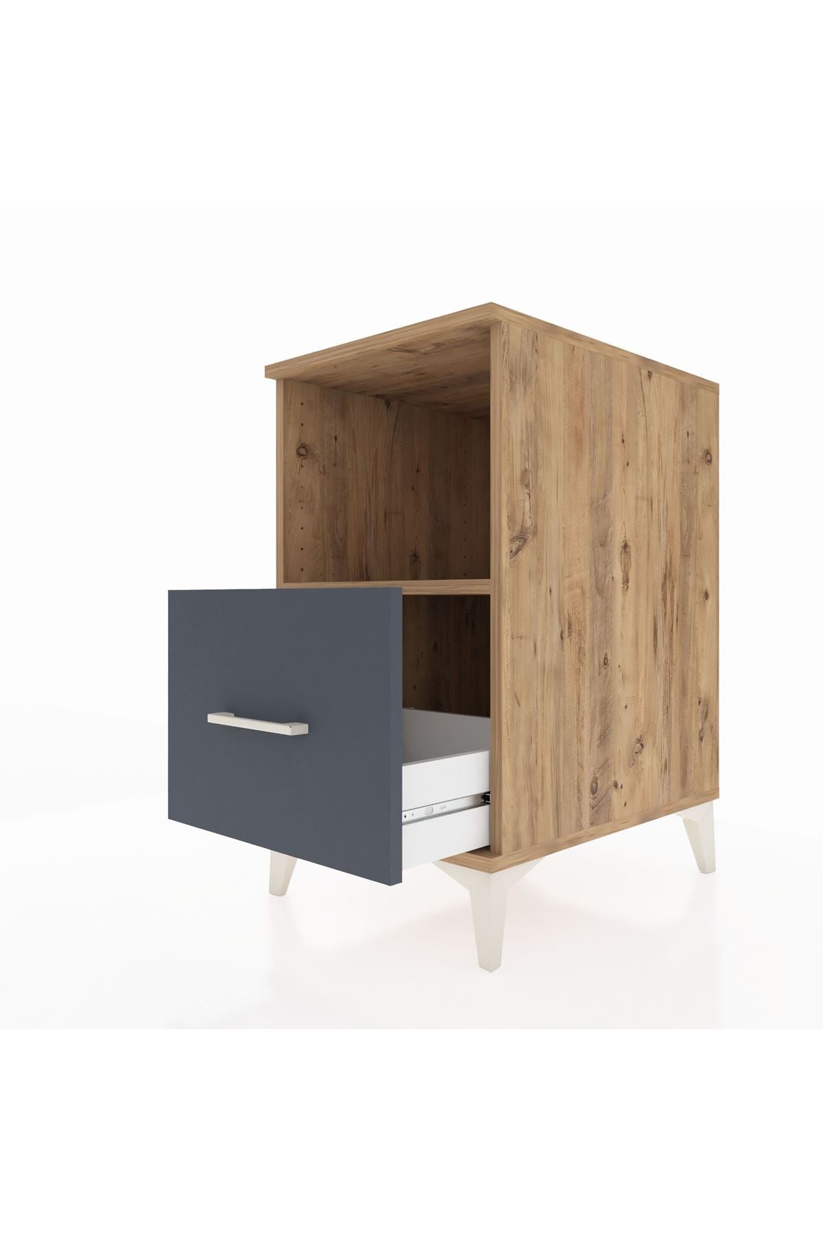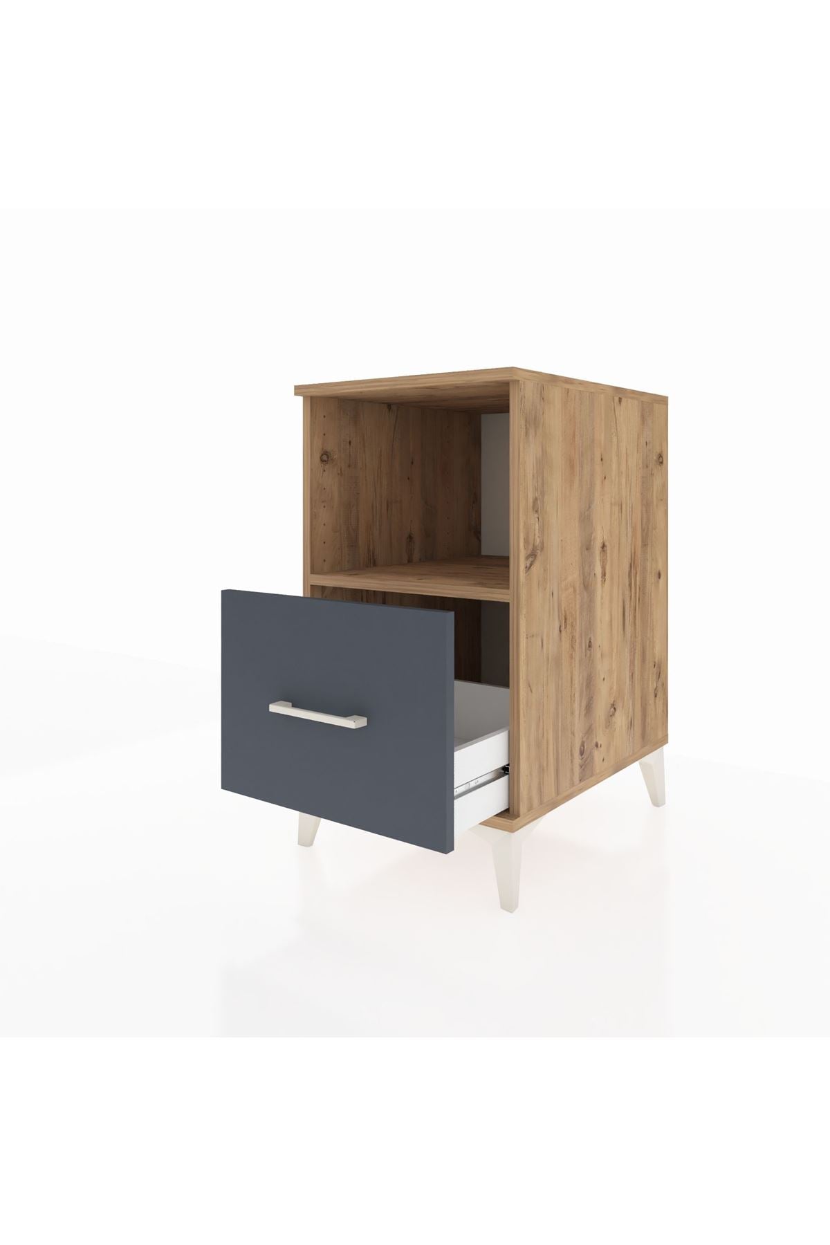 Kronos Komodin Tek Raflı Tek Çekmeceli 44x59x80 Çam-Antrasit