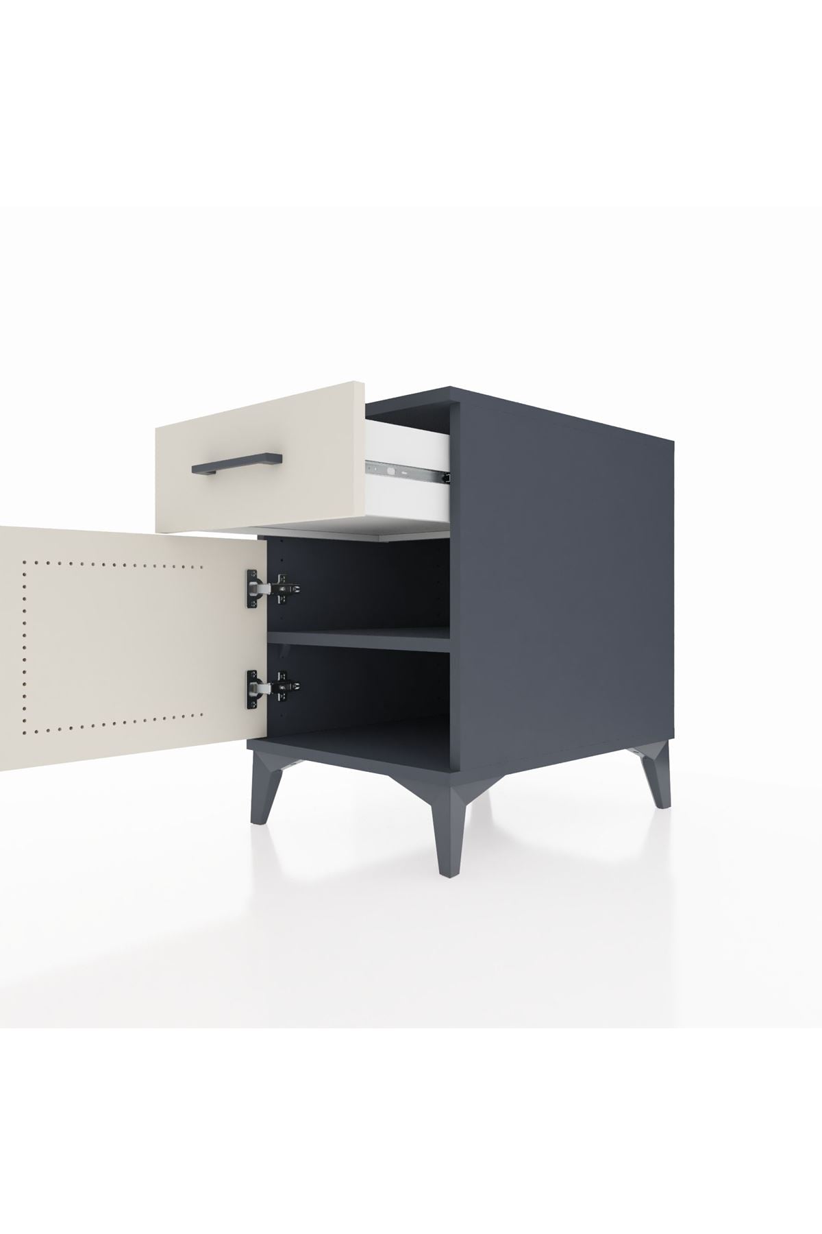 Kronos Komodin Tek Raflı Tek Çekmeceli Tek Kapaklı 44x59x64 Antrasit-Aytaşı