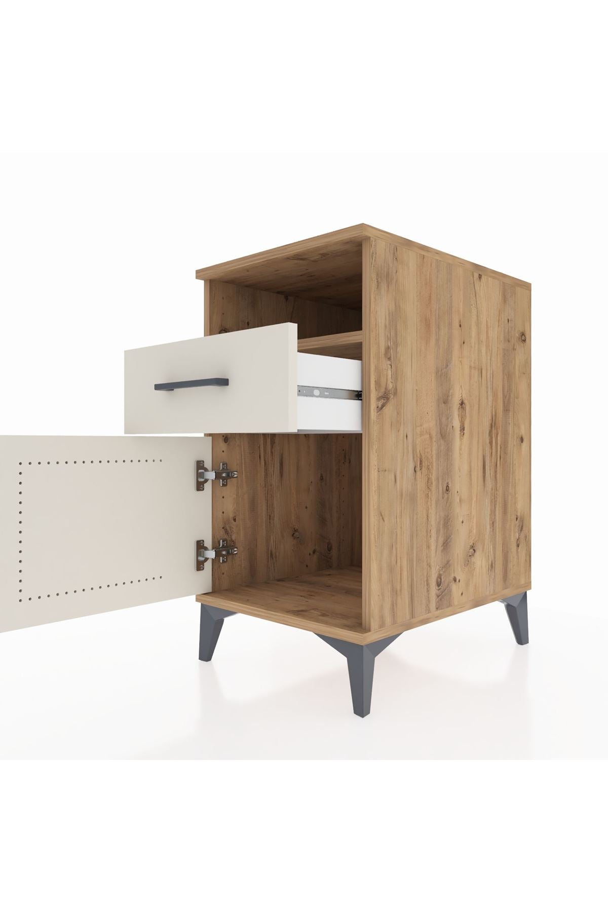 Kronos Komodin Tek Raflı Tek Çekmeceli Tek Kapaklı 44x59x80 Çam-Aytaşı