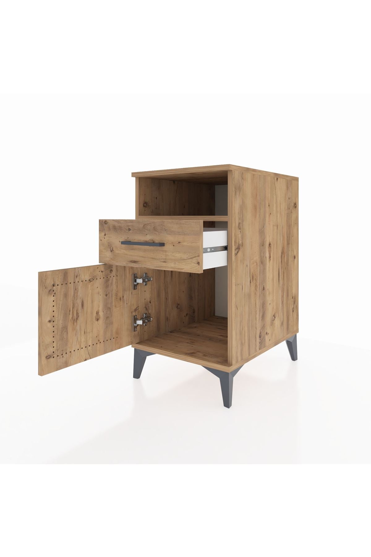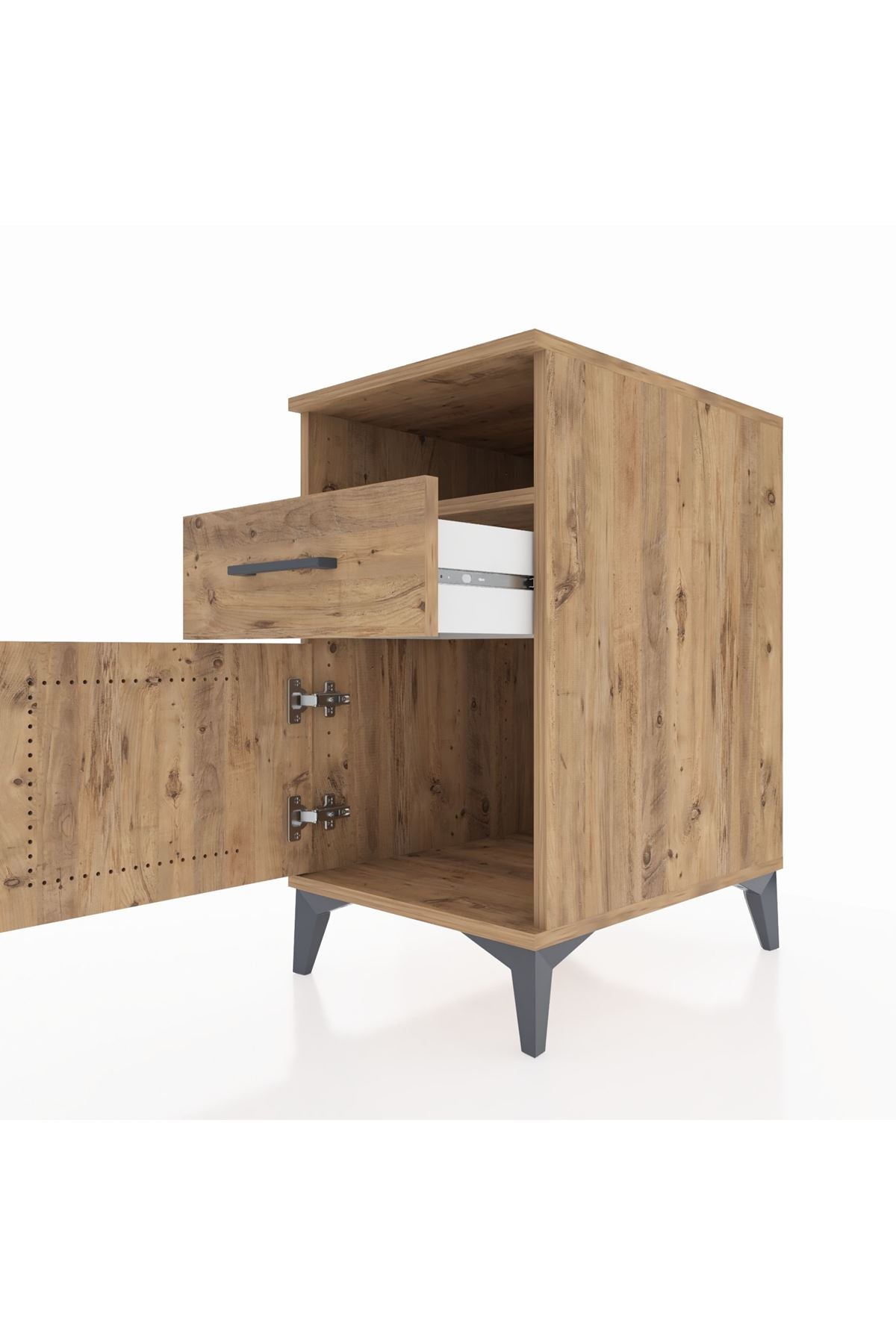 Kronos Komodin Tek Raflı Tek Çekmeceli Tek Kapaklı 44x59x80 Çam-Çam