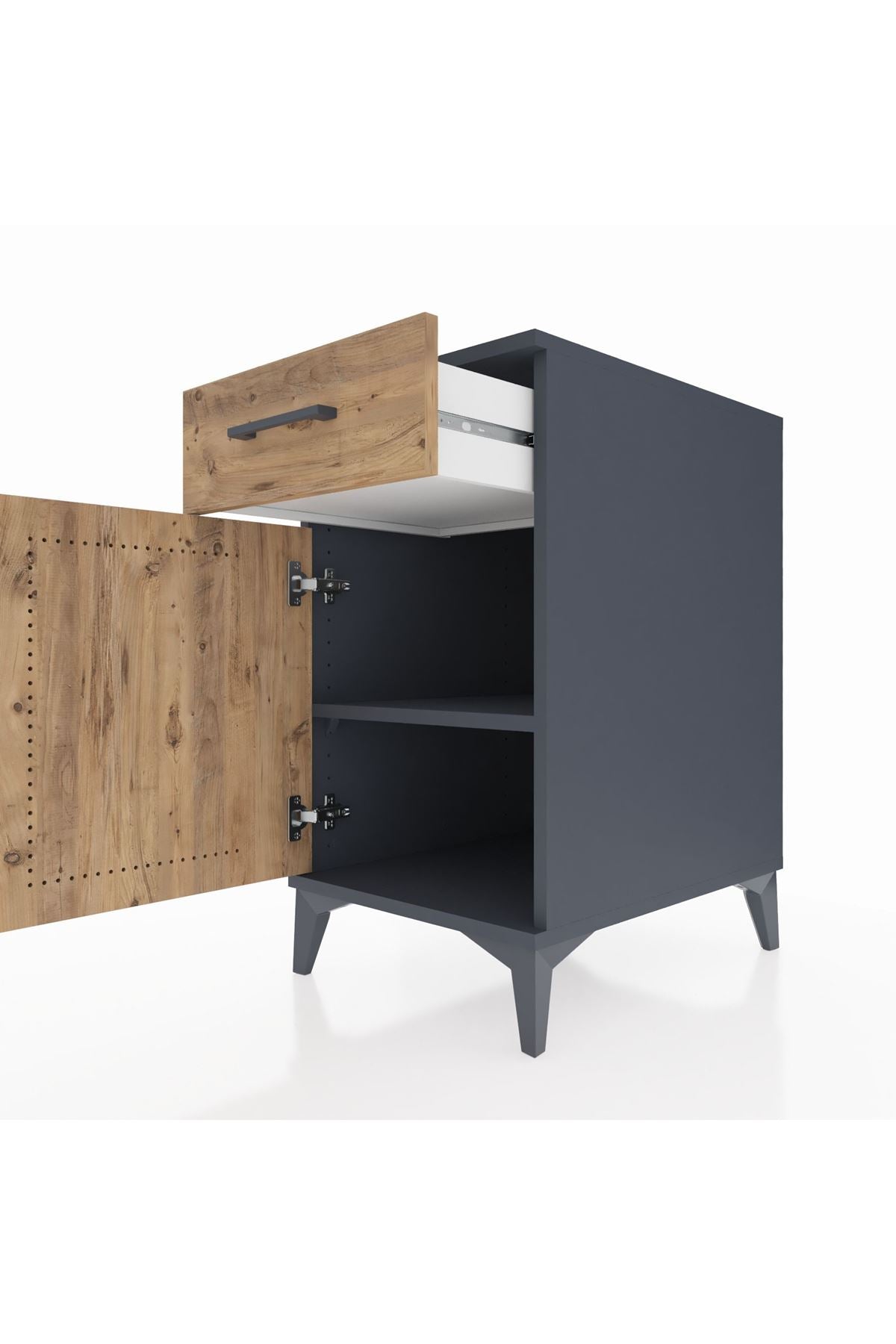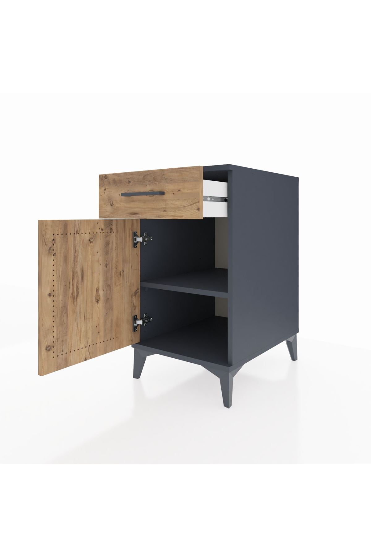 Kronos Komodin Tek Raflı Tek Çekmeceli Tek Kapaklı 44x59x80 Antrasit-Çam