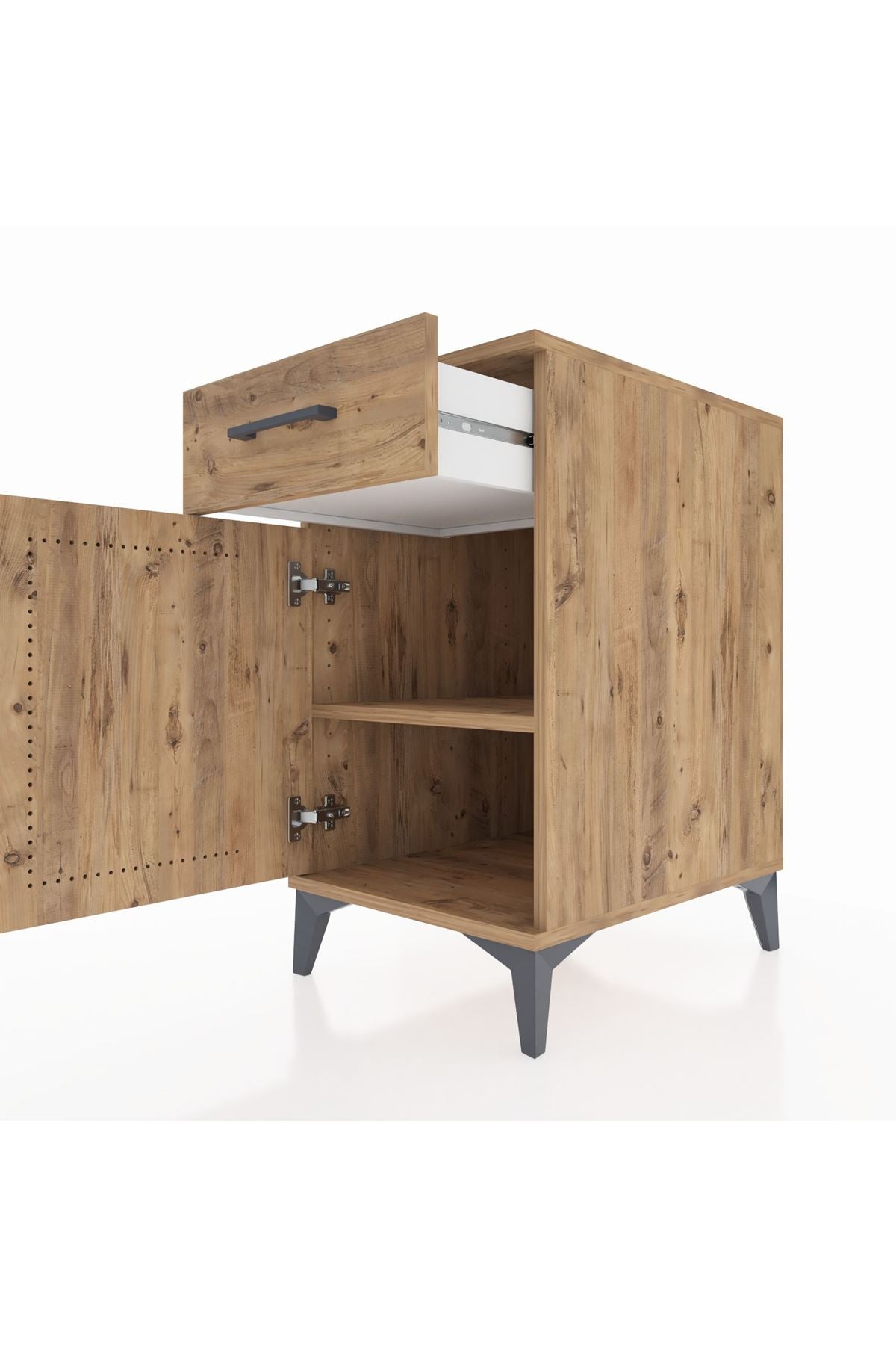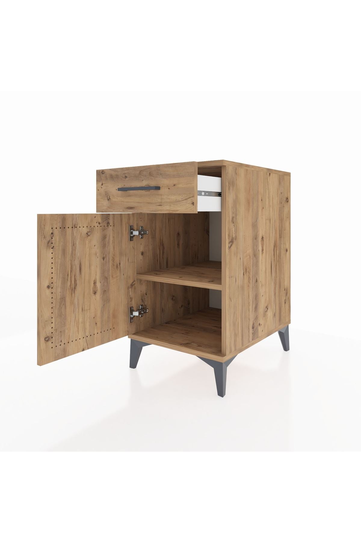 Kronos Komodin Tek Raflı Tek Çekmeceli Tek Kapaklı 44x59x80 Çam-Çam