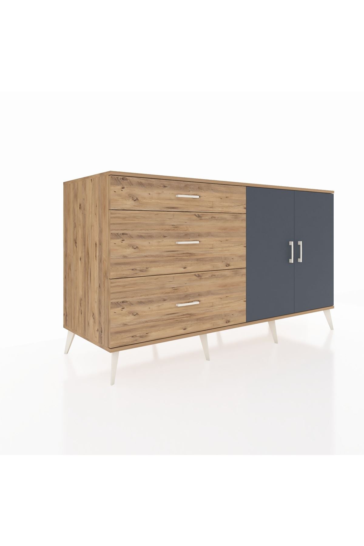 Kronos Konsol 2 Raflı 3 Çekmeceli 2 Kapaklı 176x59x99 Çam-Antrasit/Çam