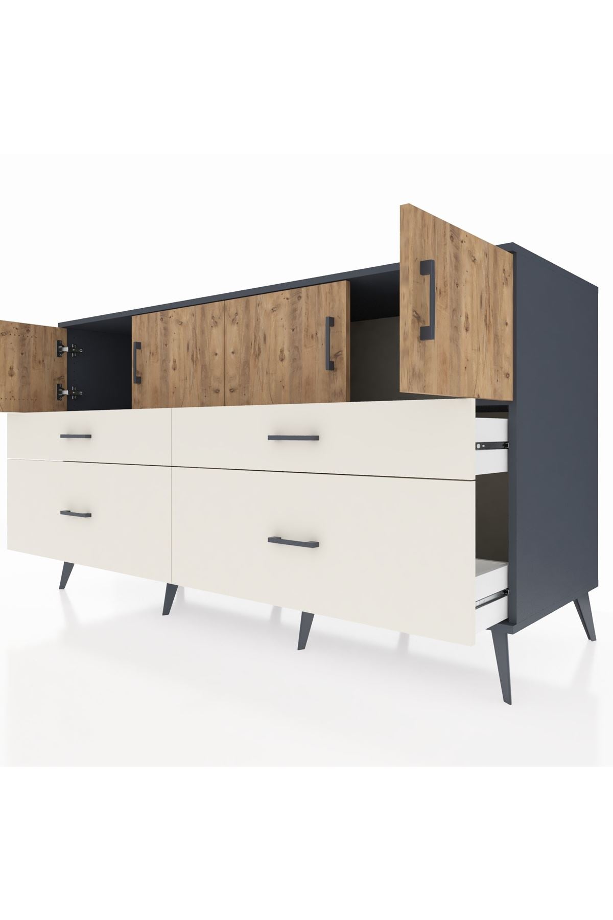 Kronos Konsol 2 Raflı 4 Çekmeceli 4 Kapaklı 176x59x99 Antrasit-Çam/Aytaşı