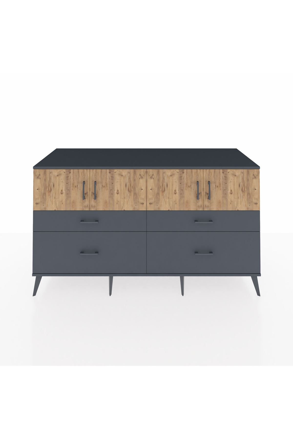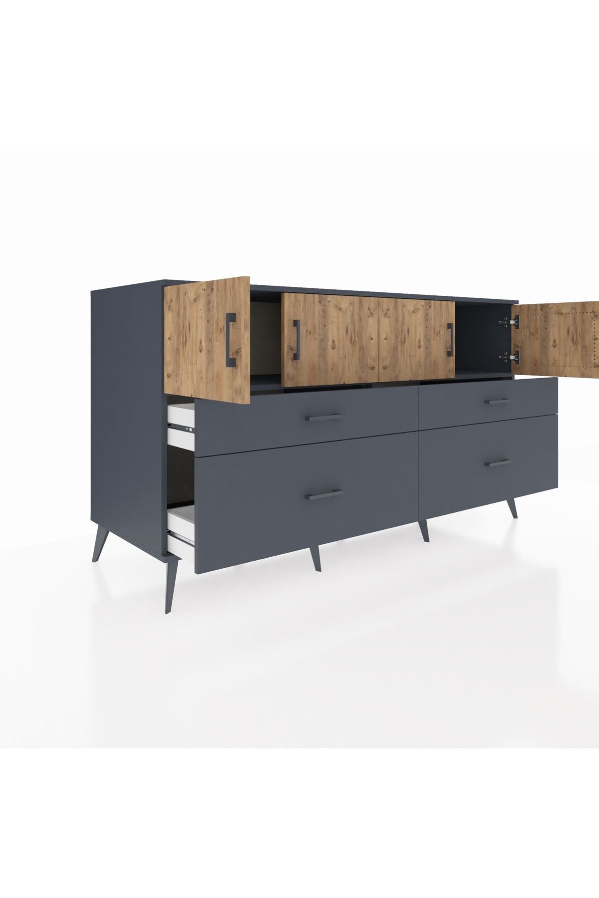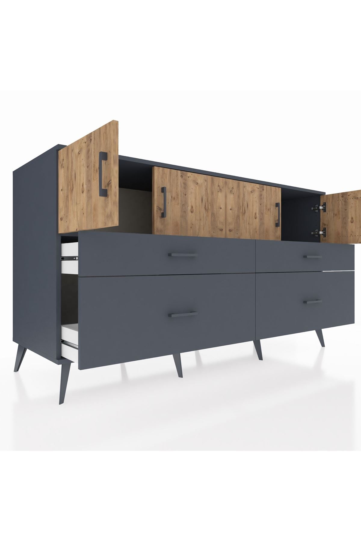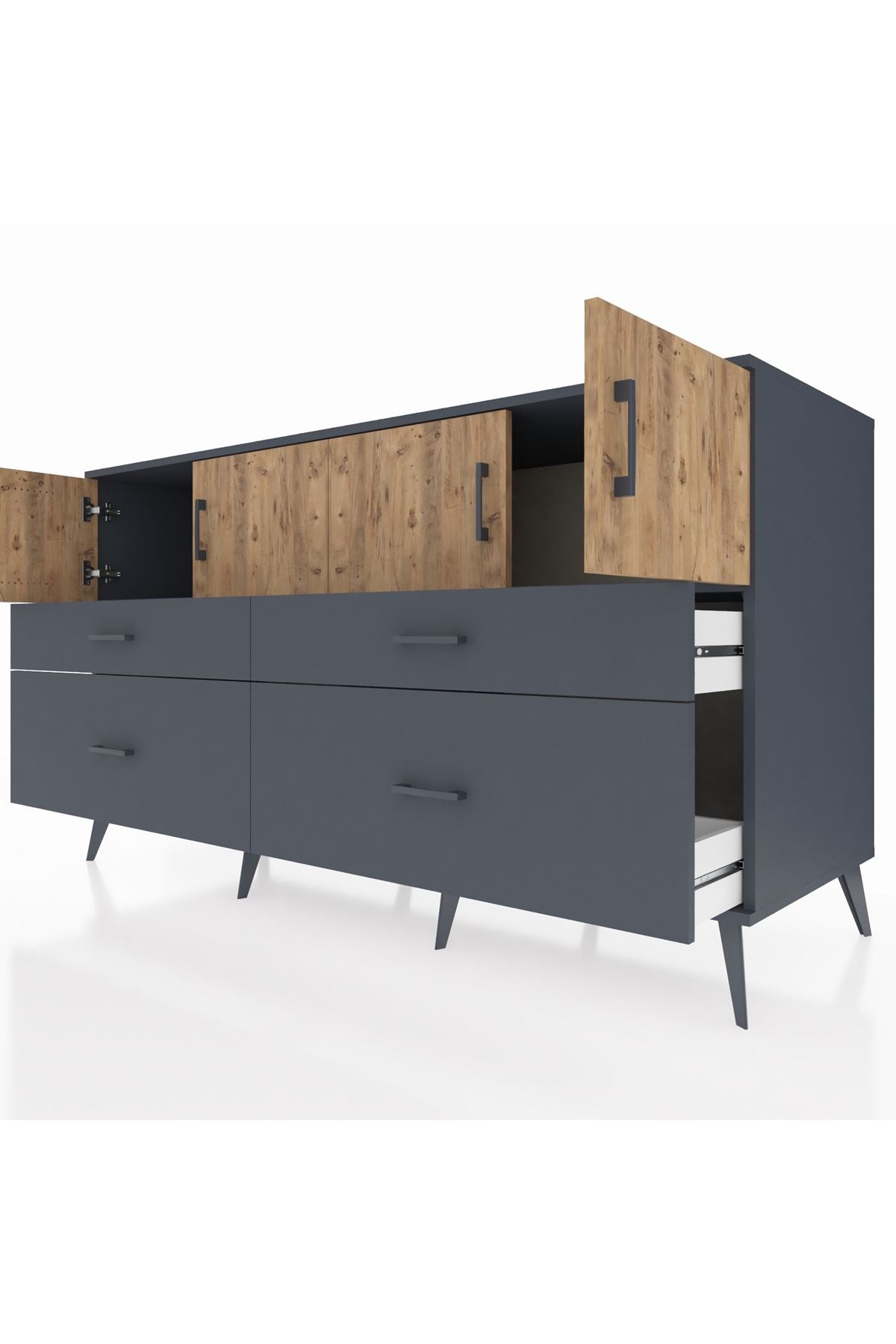 Kronos Konsol 2 Raflı 4 Çekmeceli 4 Kapaklı 176x59x99 Antrasit-Çam/Antrasit