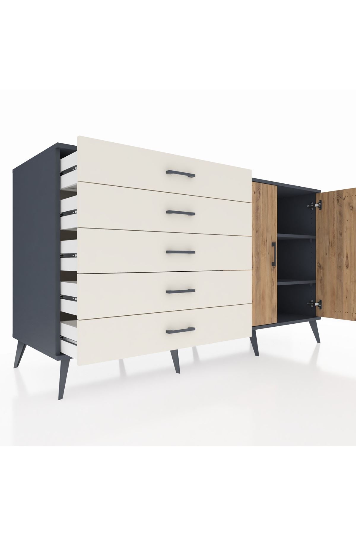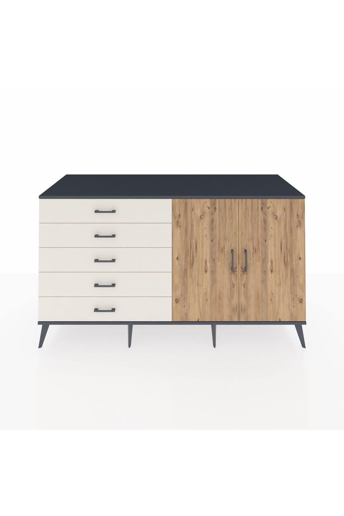 Kronos Konsol 2 Raflı 5 Çekmeceli 2 Kapaklı 176x59x99 Antrasit-Çam/Aytaşı