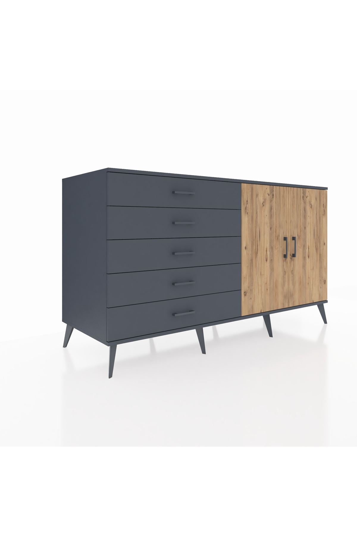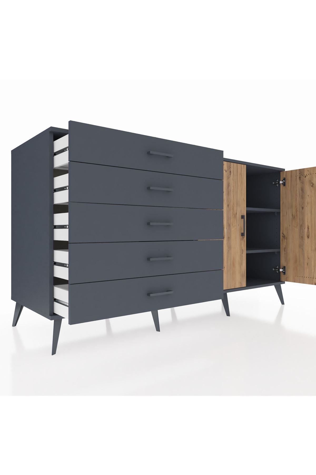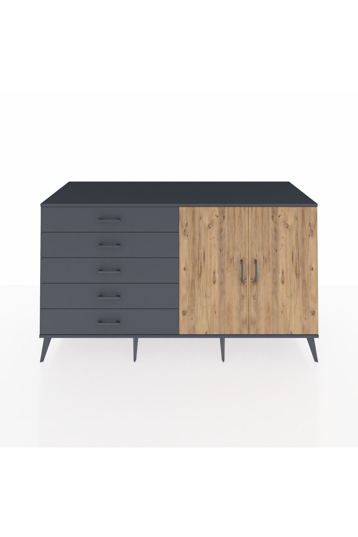 Kronos Konsol 2 Raflı 5 Çekmeceli 2 Kapaklı 176x59x99 Antrasit-Çam/Antrasit