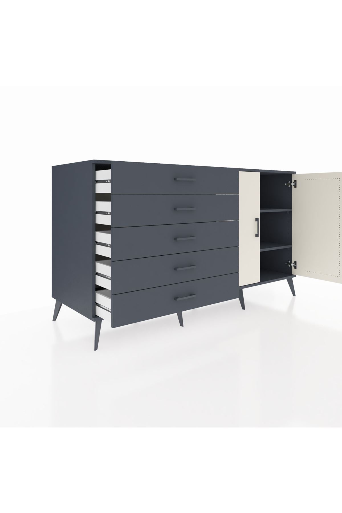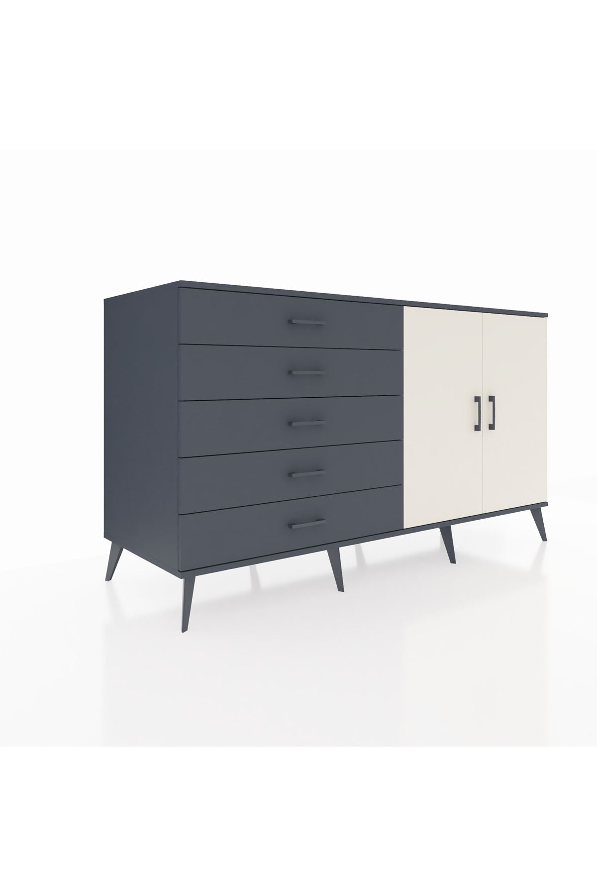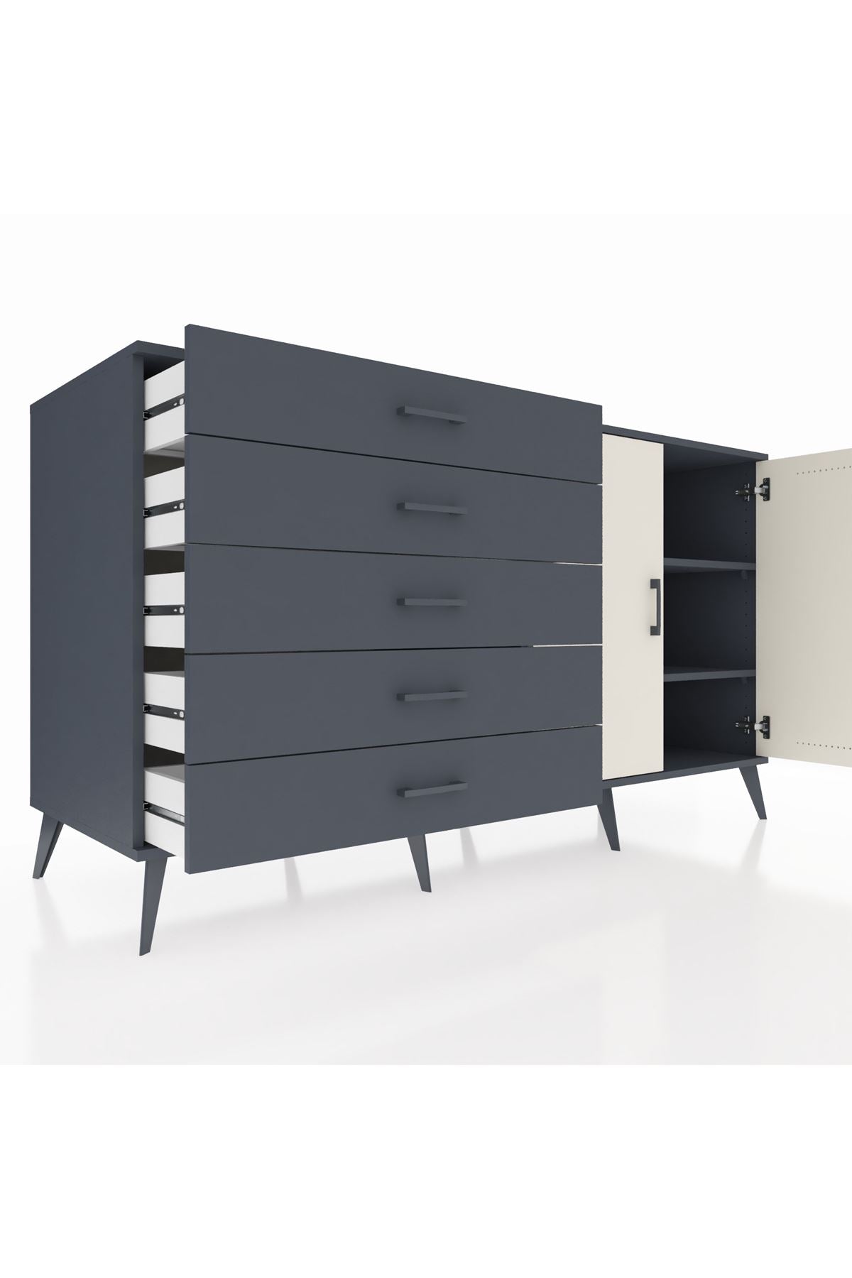 Kronos Konsol 2 Raflı 5 Çekmeceli 2 Kapaklı 176x59x99 Antrasit-Aytaşı/Antrasit