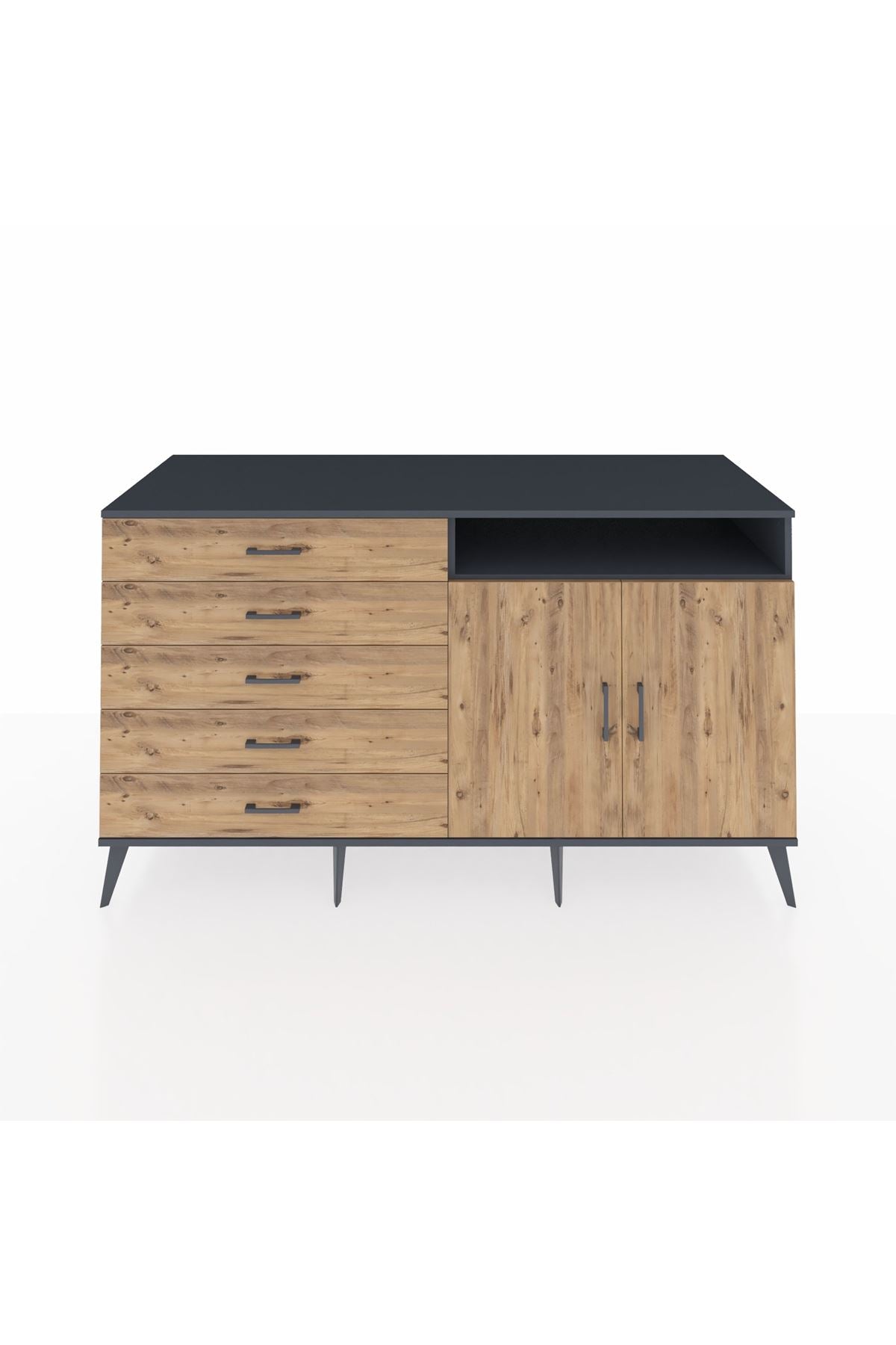 Kronos Konsol 2 Raflı 5 Çekmeceli 2 Kapaklı 176x59x99 Antrasit-Çam
