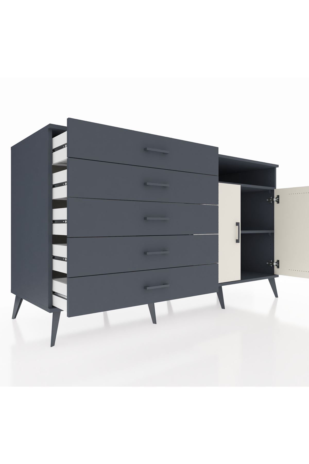 Kronos Konsol 2 Raflı 5 Çekmeceli 2 Kapaklı 176x59x99 Antrasit-Aytaşı/Antrasit