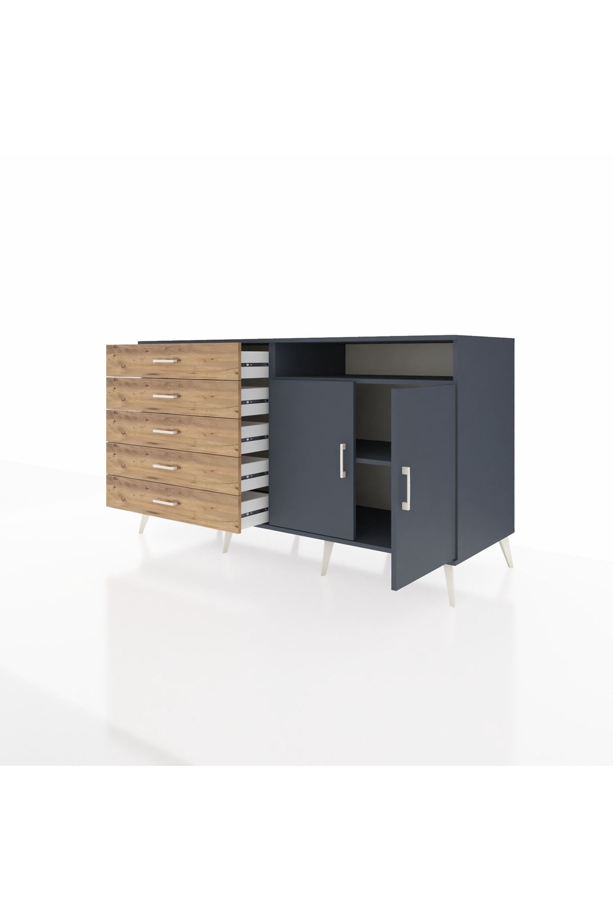 Kronos Konsol 2 Raflı 5 Çekmeceli 2 Kapaklı 176x59x99 Antrasit-Antrasit/Çam