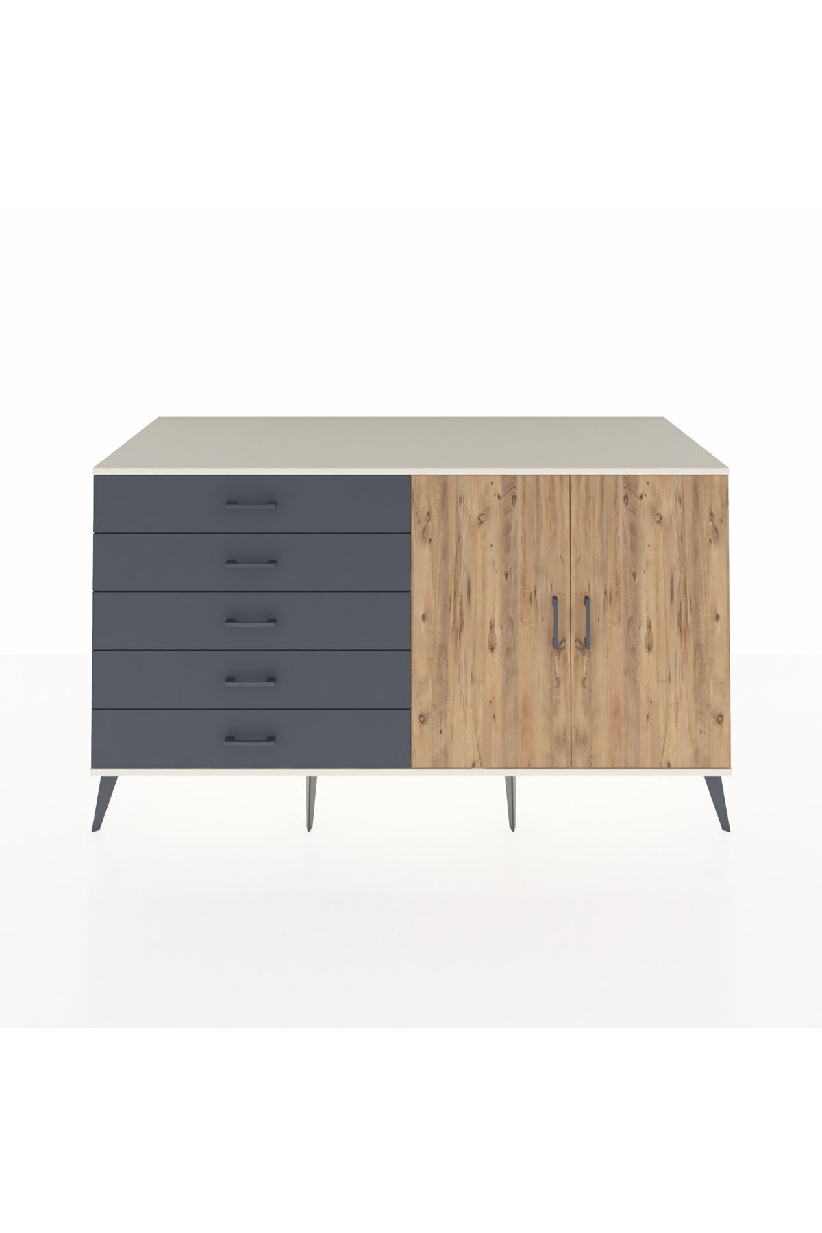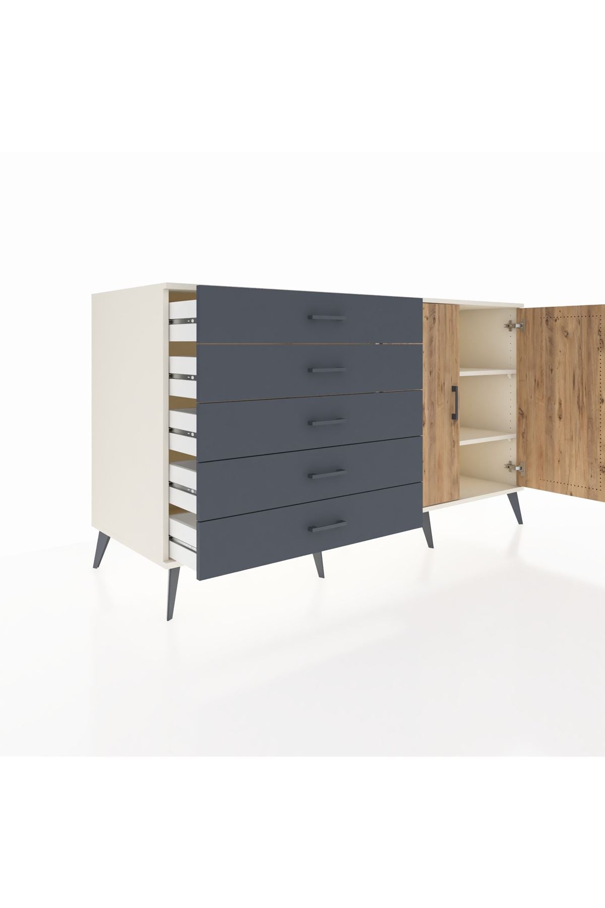 Kronos Konsol 2 Raflı 5 Çekmeceli 2 Kapaklı 176x59x99 Aytaşı-Çam/Antrasit