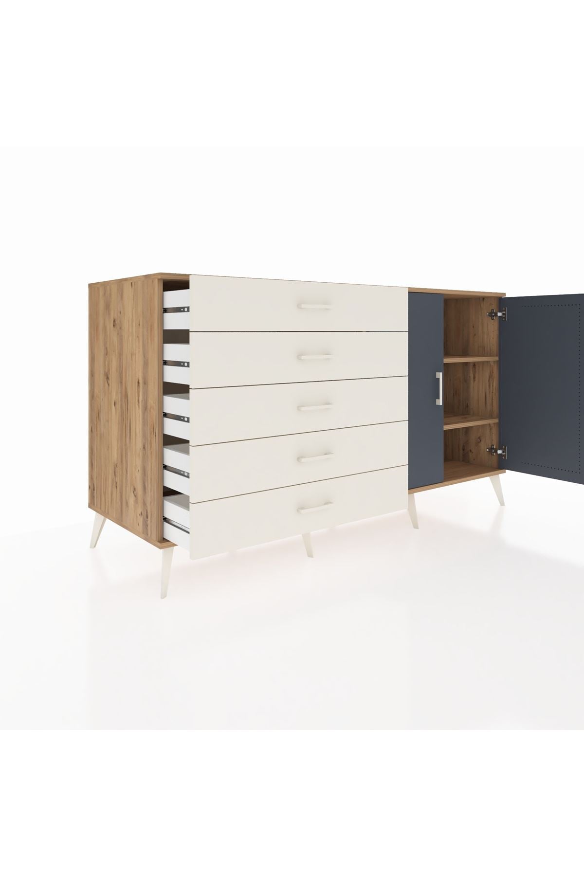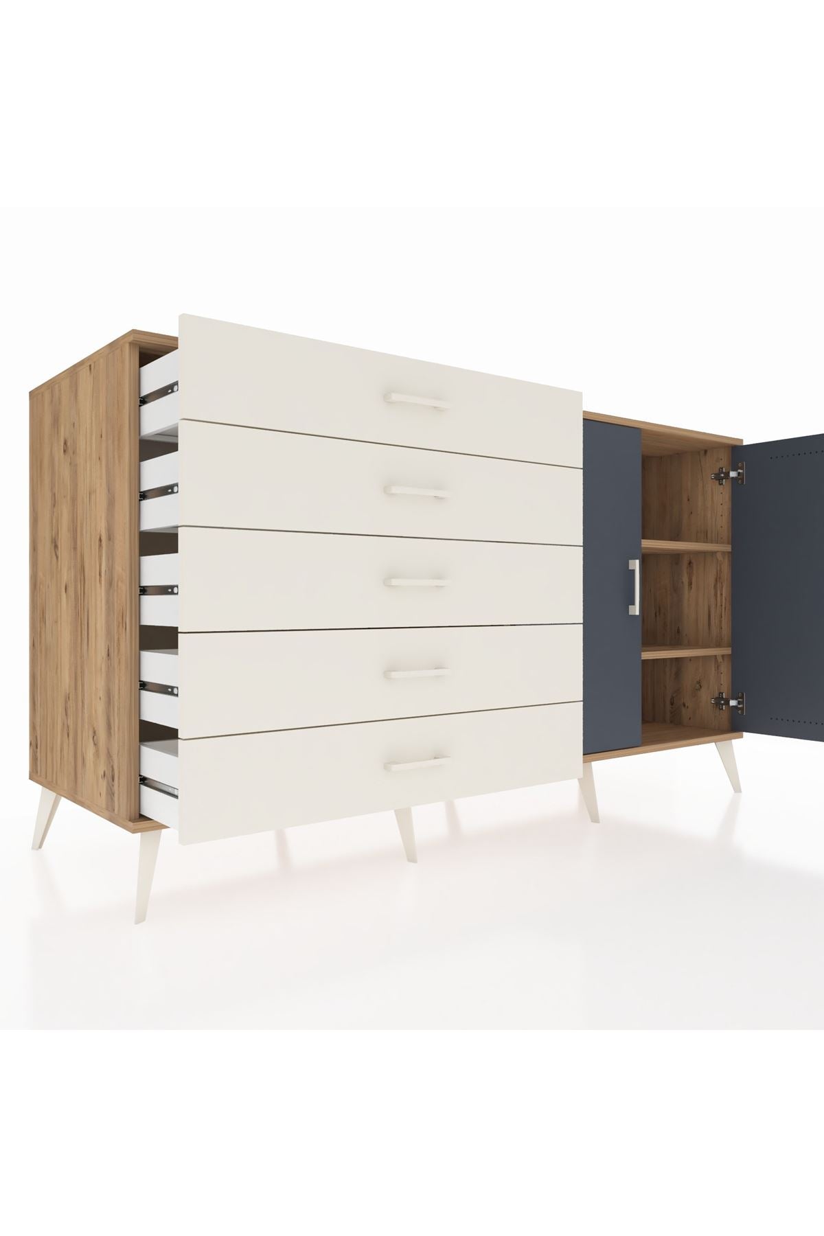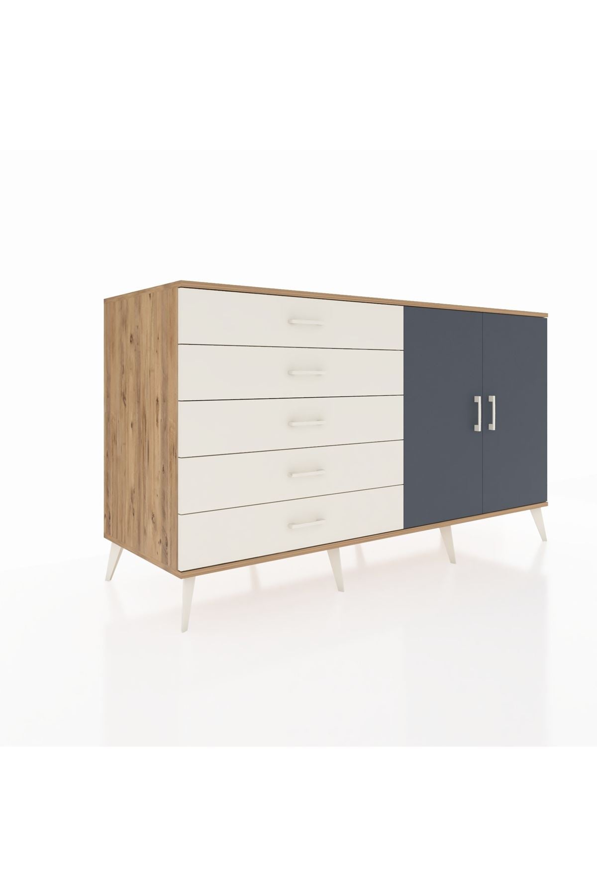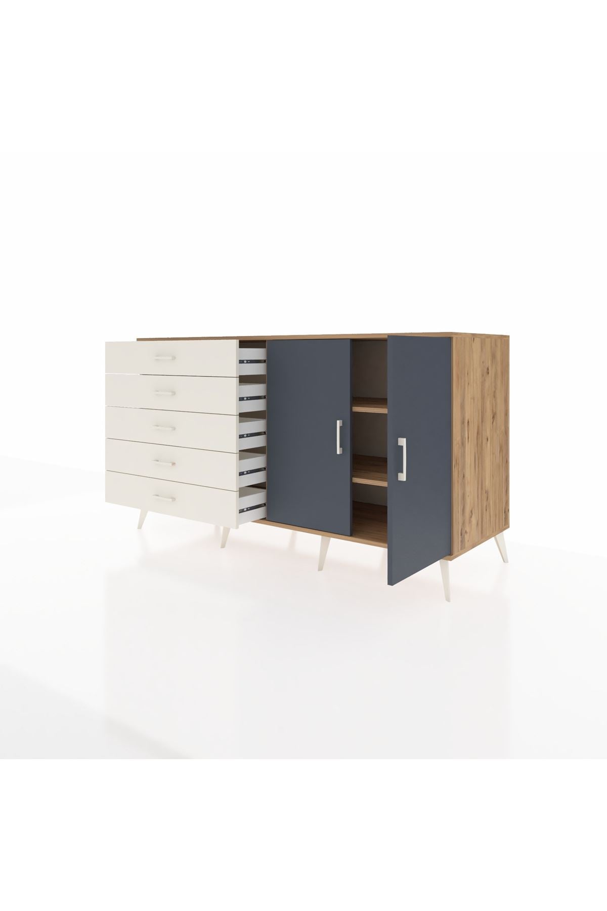 Kronos Konsol 2 Raflı 5 Çekmeceli 2 Kapaklı 176x59x99 Çam-Antrasit/Aytaşı