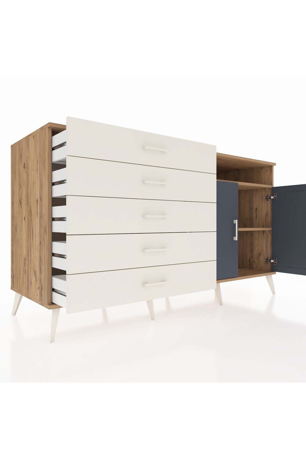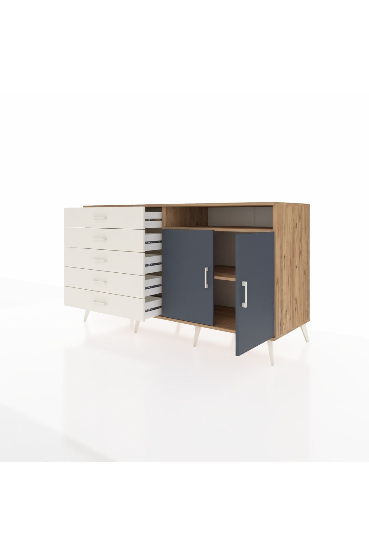 Kronos Konsol 2 Raflı 5 Çekmeceli 2 Kapaklı 176x59x99 Çam-Antrasit/Aytaşı