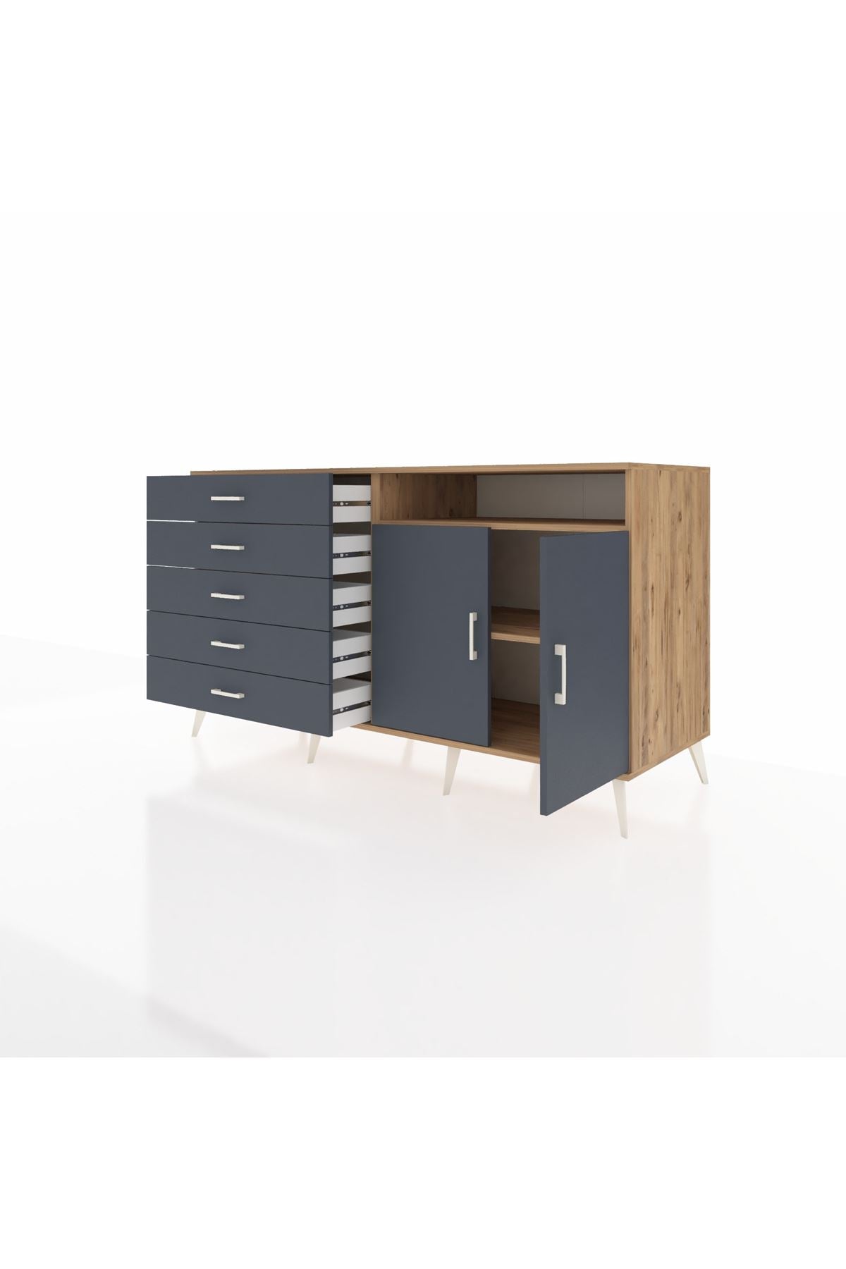 Kronos Konsol 2 Raflı 5 Çekmeceli 2 Kapaklı 176x59x99 Çam-Antrasit
