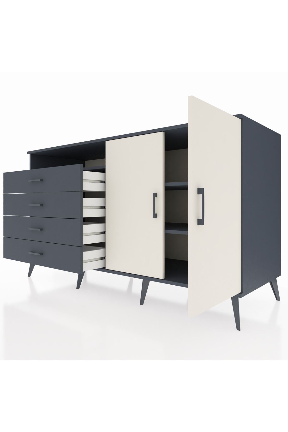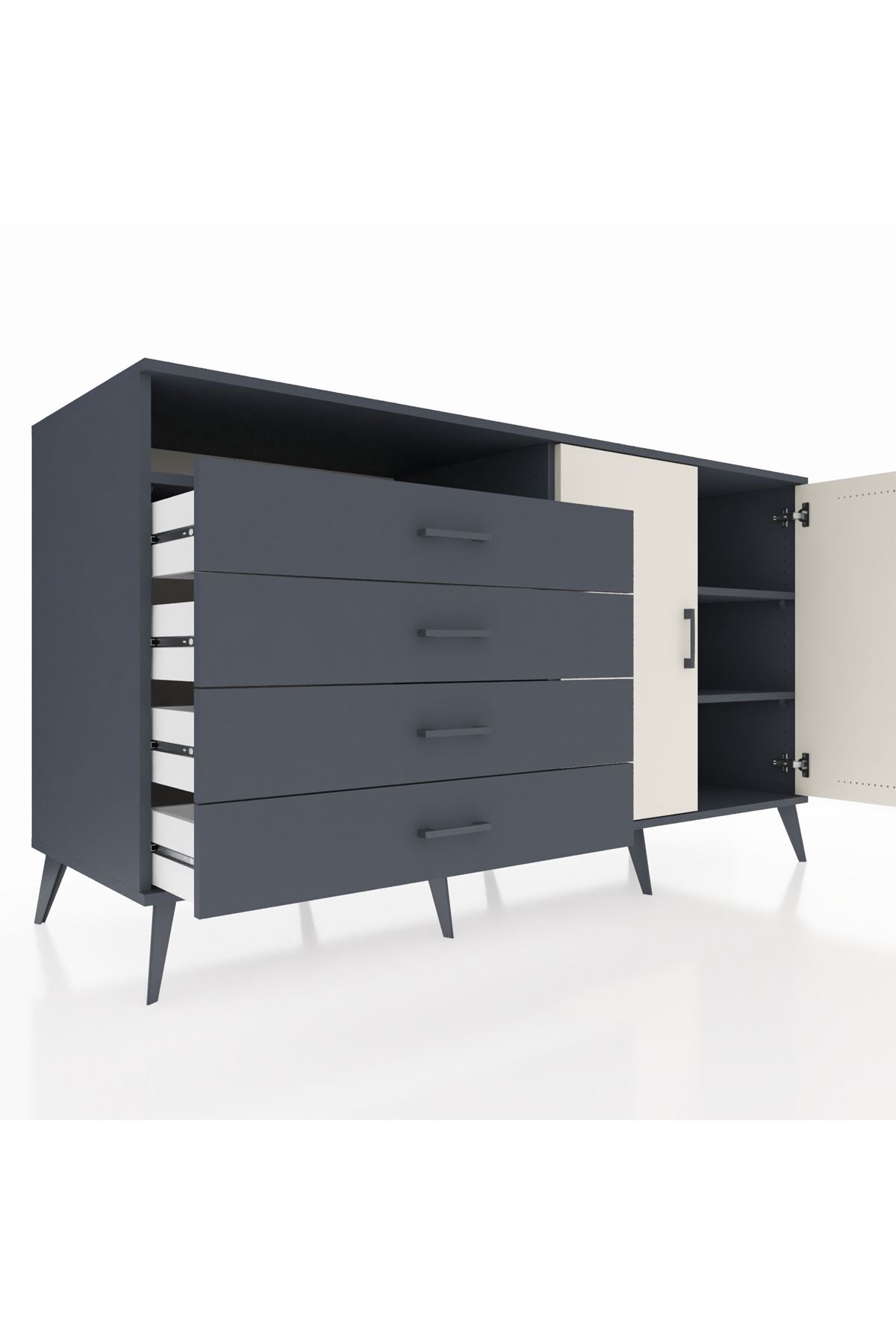 Kronos Konsol 3 Raflı 4 Çekmeceli 2 Kapaklı 176x59x99 Antrasit-Aytaşı/Antrasit