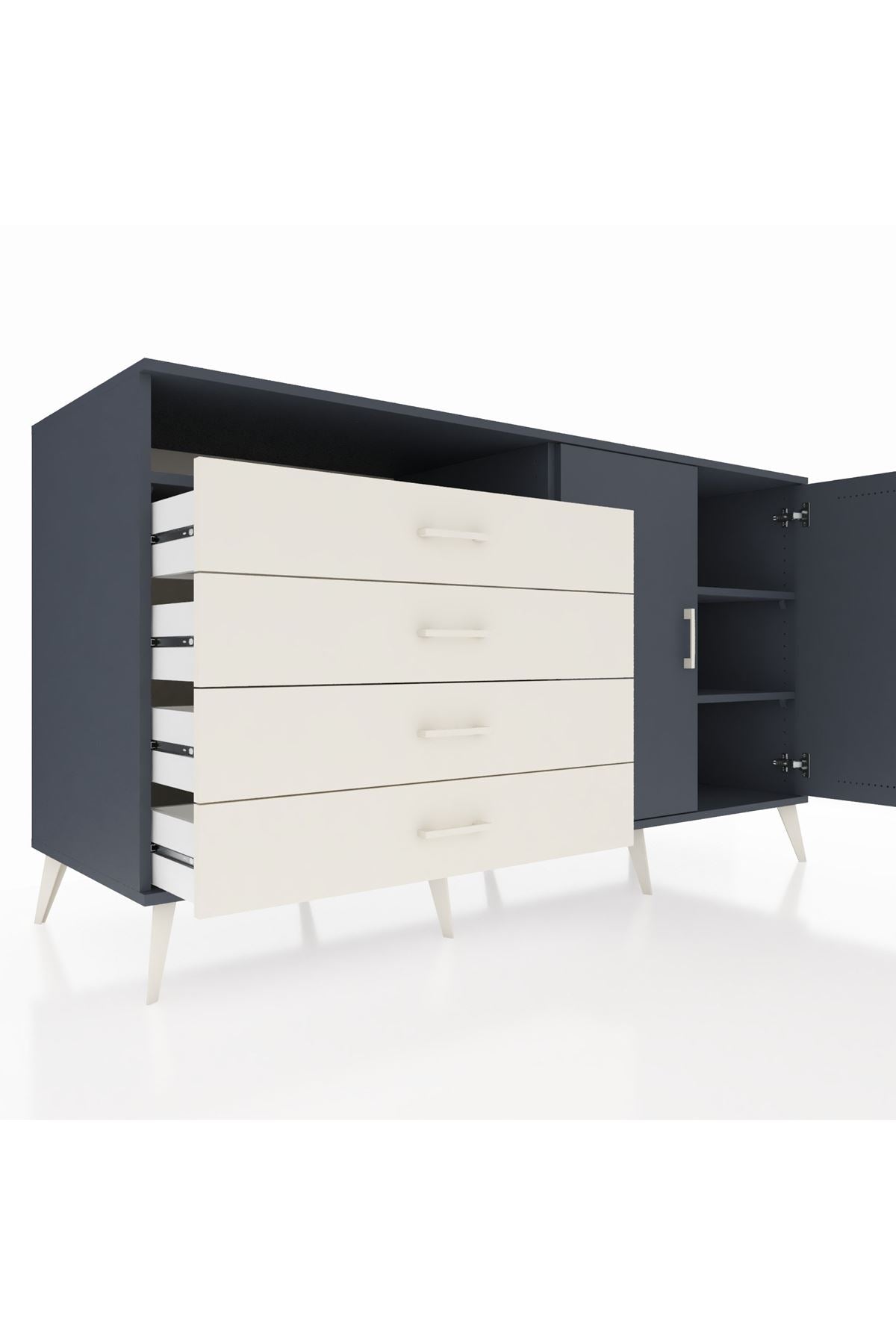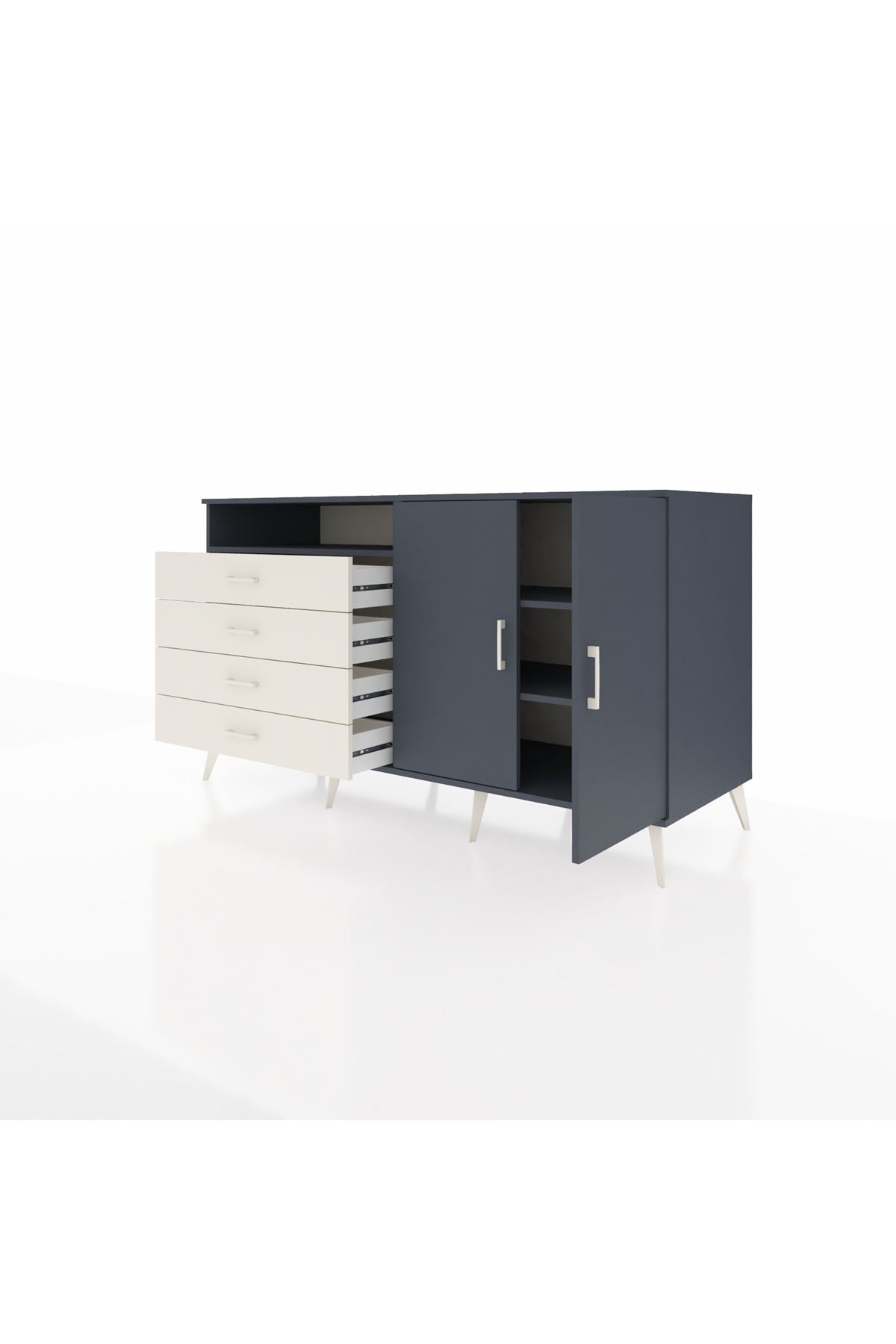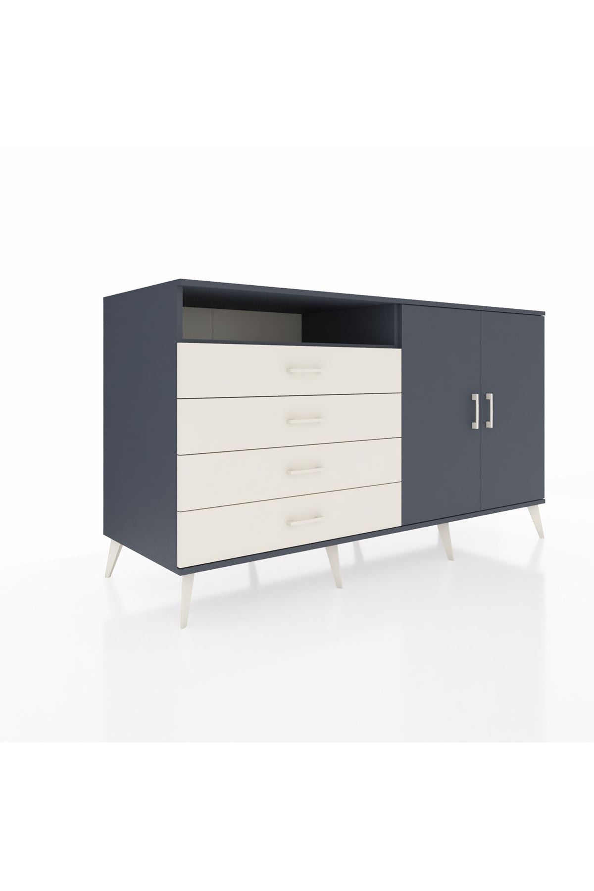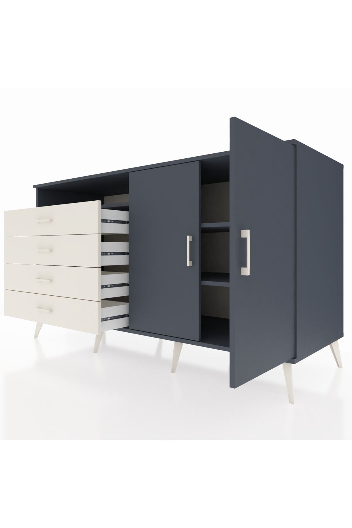 Kronos Konsol 3 Raflı 4 Çekmeceli 2 Kapaklı 176x59x99 Antrasit-Antrasit/Aytaşı