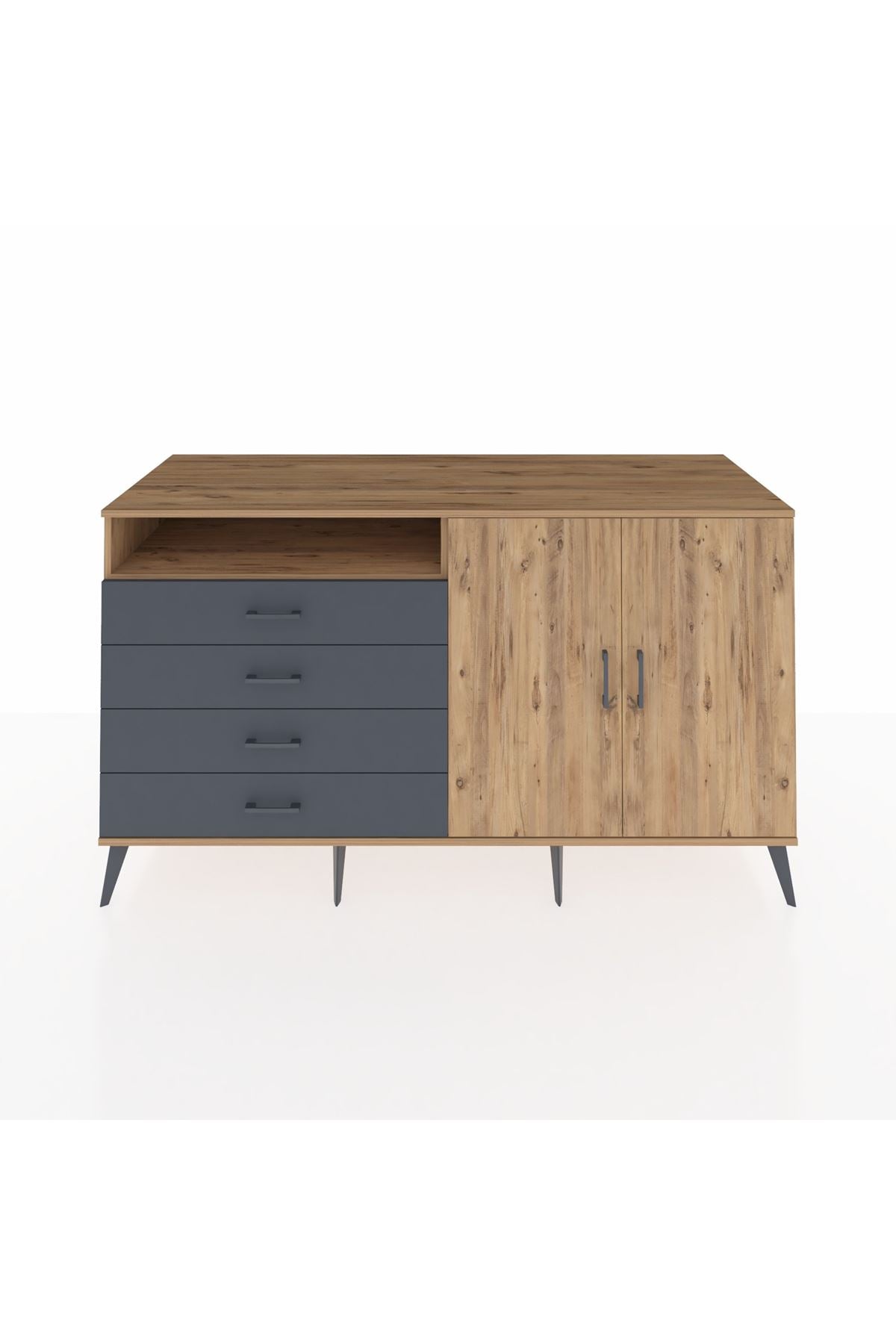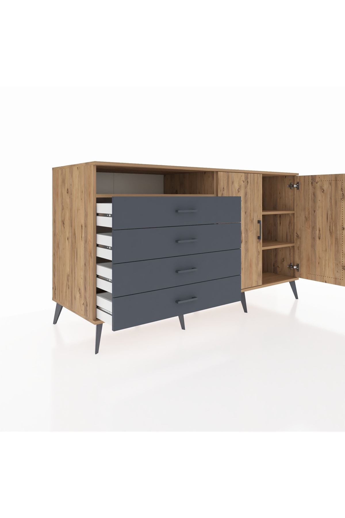 Kronos Konsol 3 Raflı 4 Çekmeceli 2 Kapaklı 176x59x99 Çam-Çam/Antrasit