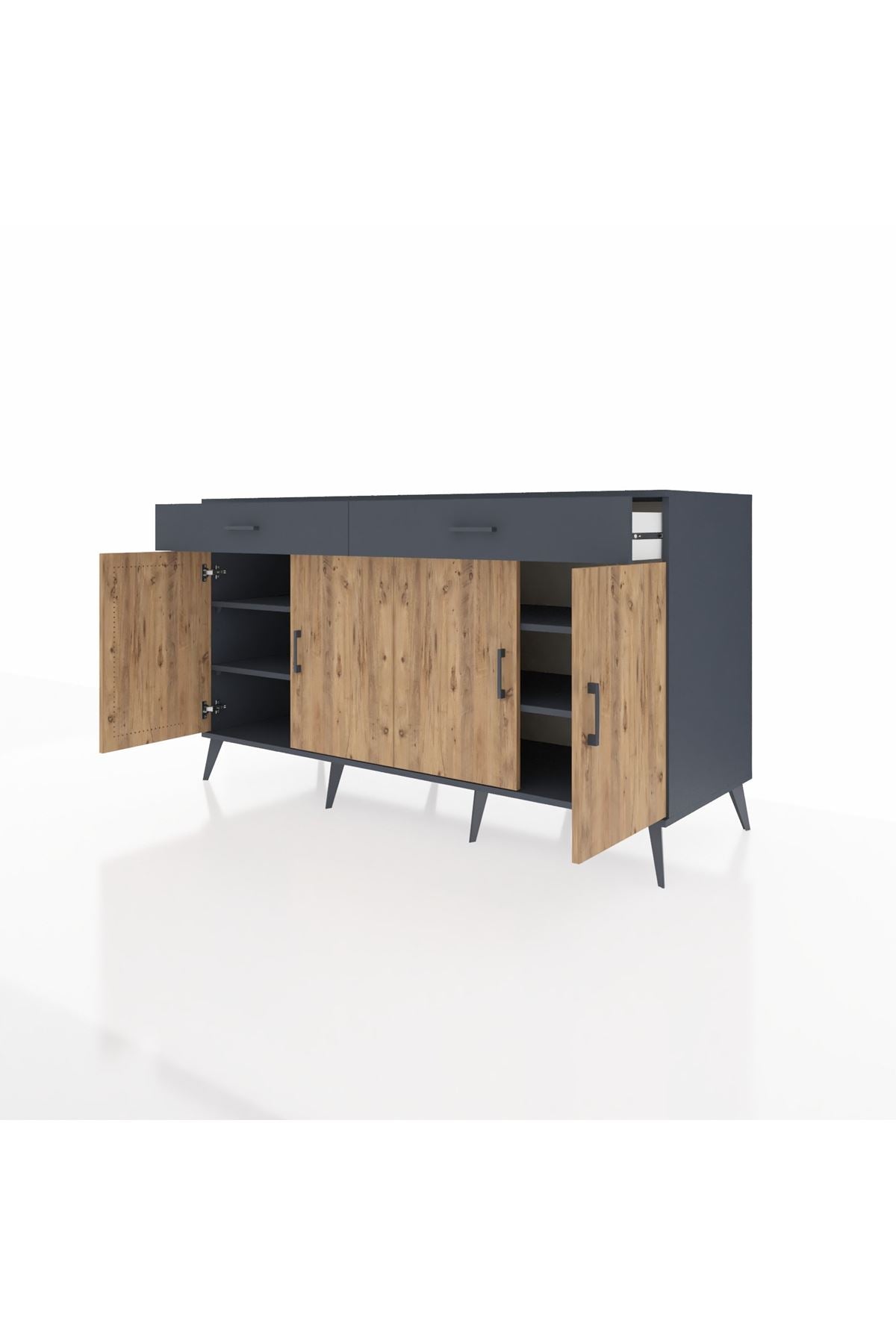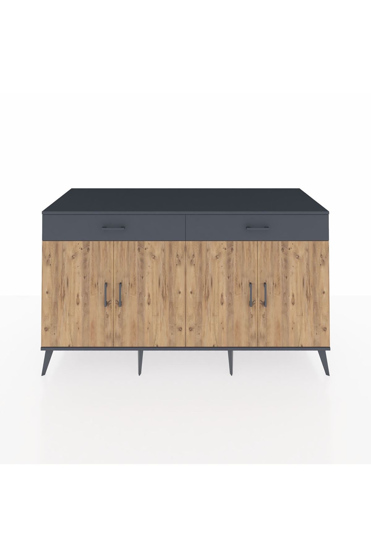 Kronos Konsol 4 Raflı 2 Çekmeceli 4 Kapaklı 176x59x99 Antrasit-Çam/Antrasit