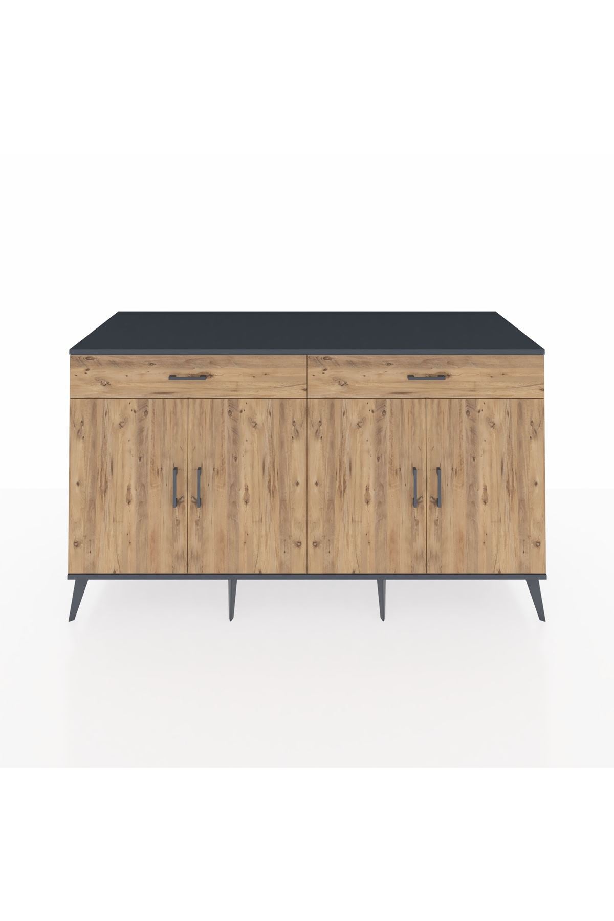 Kronos Konsol 4 Raflı 2 Çekmeceli 4 Kapaklı 176x59x99 Antrasit-Çam