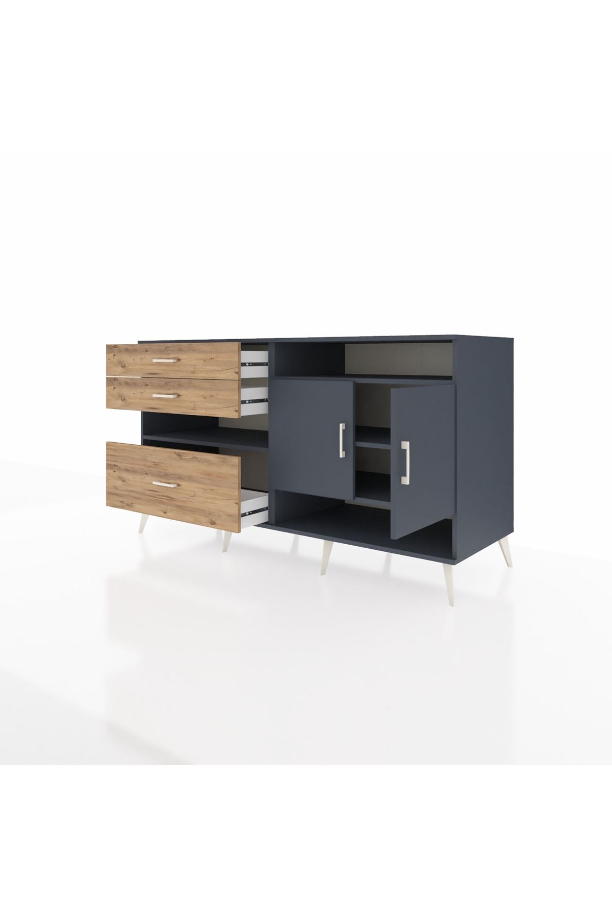 Kronos Konsol 4 Raflı 3 Çekmeceli 2 Kapaklı 176x59x99 Antrasit-Antrasit/Çam
