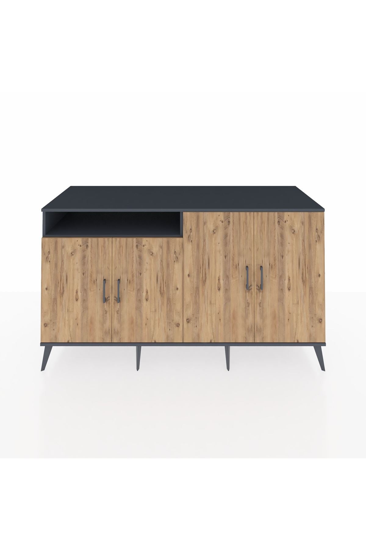 Kronos Konsol 4 Raflı 4 Kapaklı 176x59x99 Antrasit-Çam/Antrasit