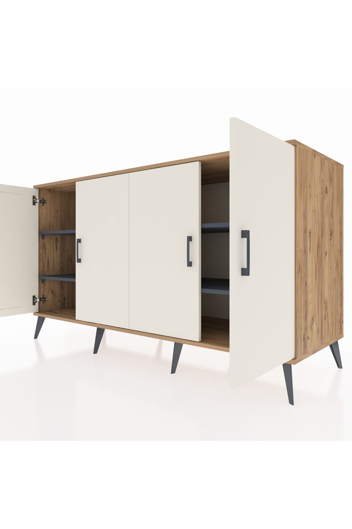 Kronos Konsol 4 Raflı 4 Kapaklı 176x59x99 Çam-Aytaşı/Antrasit
