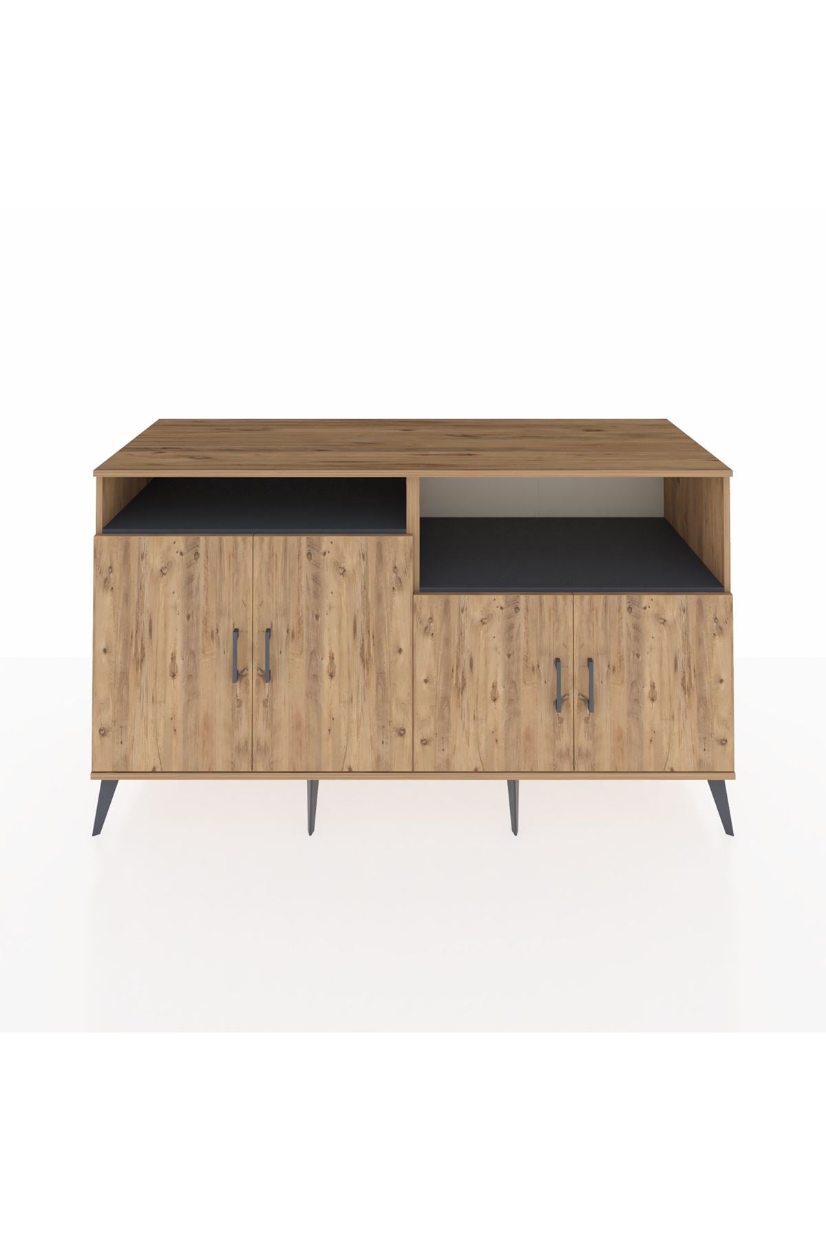 Kronos Konsol 4 Raflı 4 Kapaklı 176x59x99 Çam-Çam/Antrasit