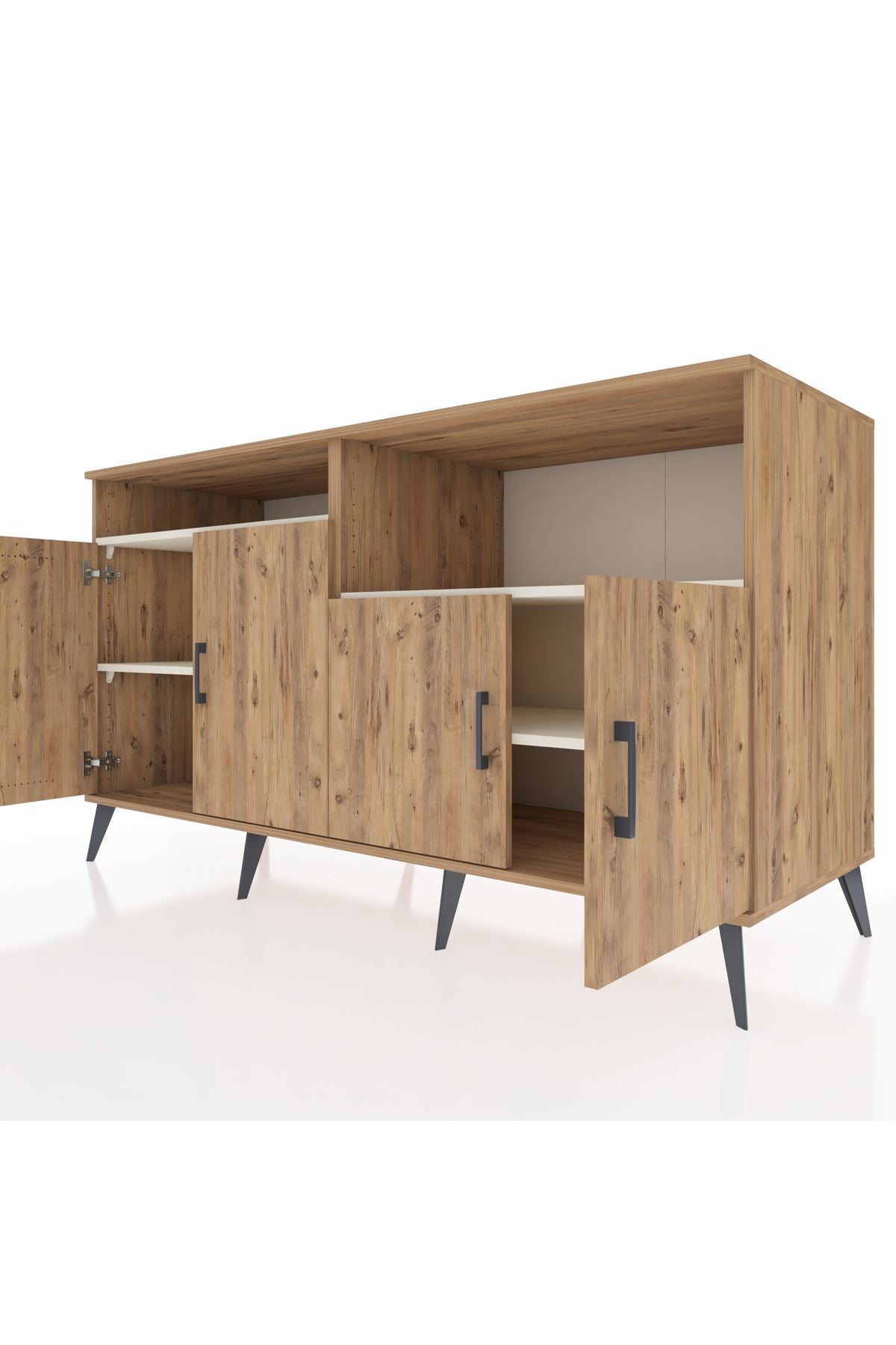 Kronos Konsol 4 Raflı 4 Kapaklı 176x59x99 Çam-Çam/Aytaşı