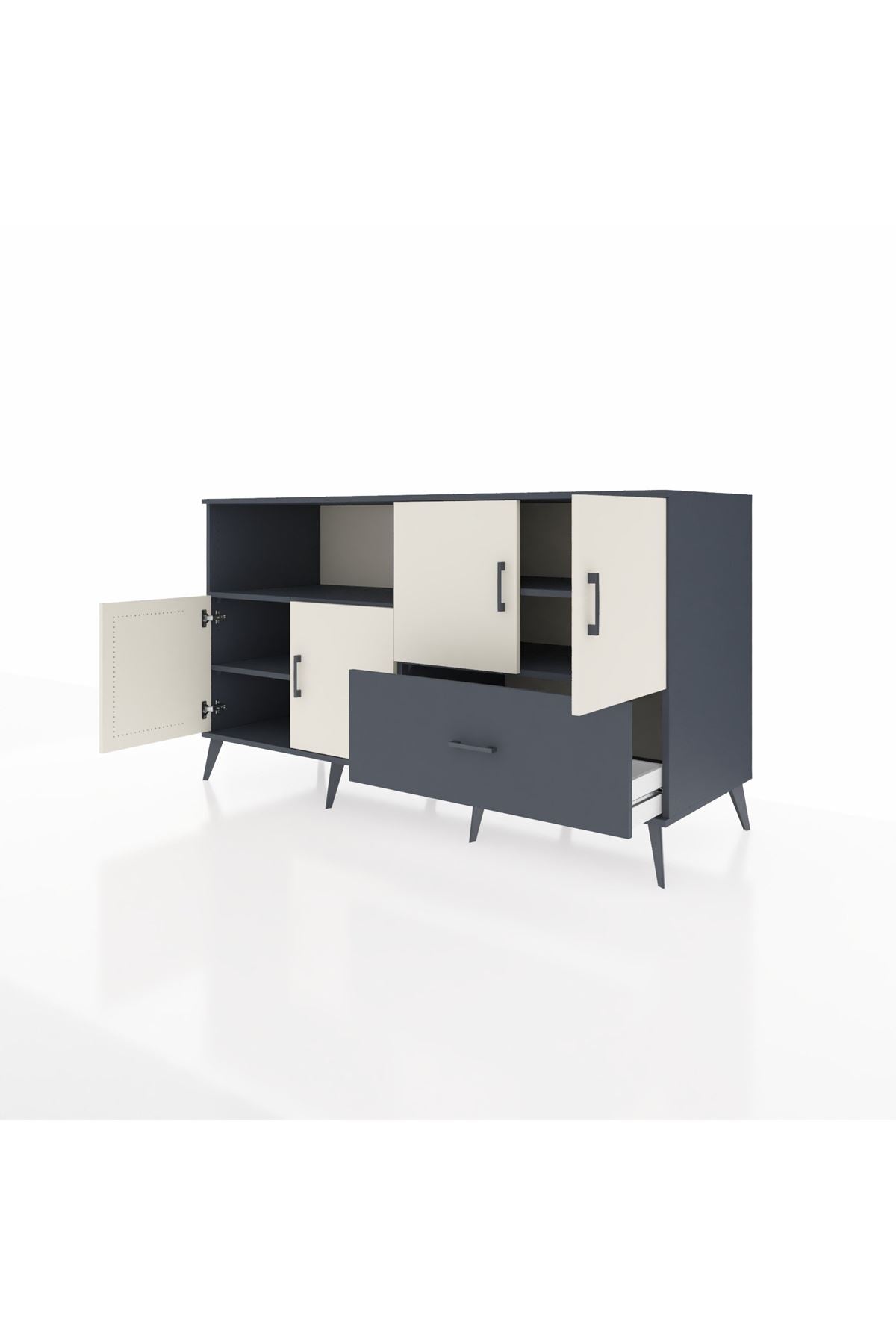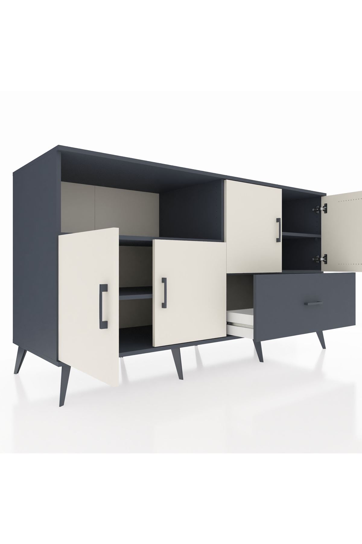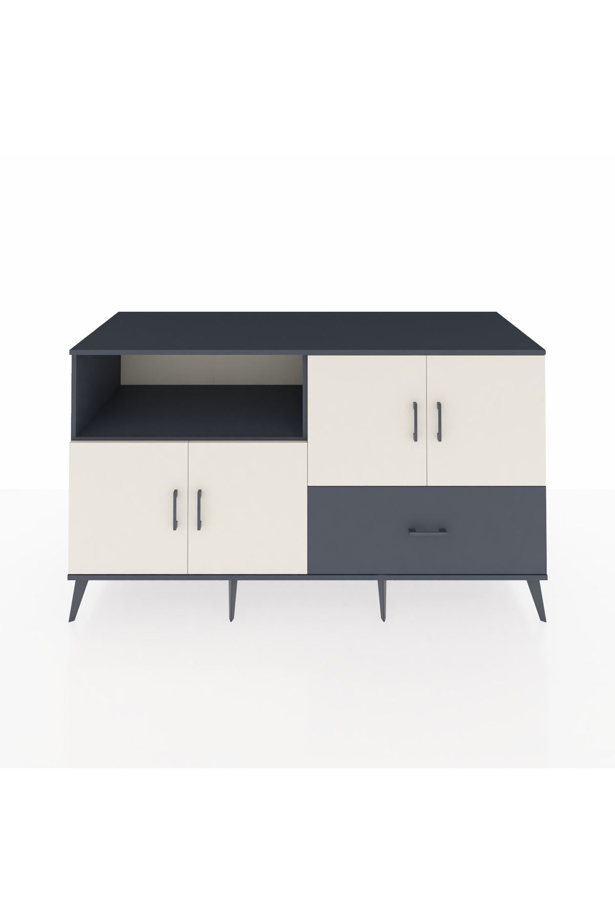 Kronos Konsol 4 Raflı Tek Çekmeceli 4 Kapaklı 176x59x99 Antrasit-Aytaşı/Antrasit