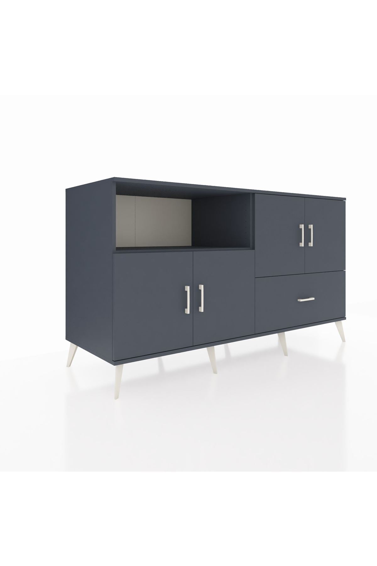 Kronos Konsol 4 Raflı Tek Çekmeceli 4 Kapaklı 176x59x99 Antrasit-Antrasit