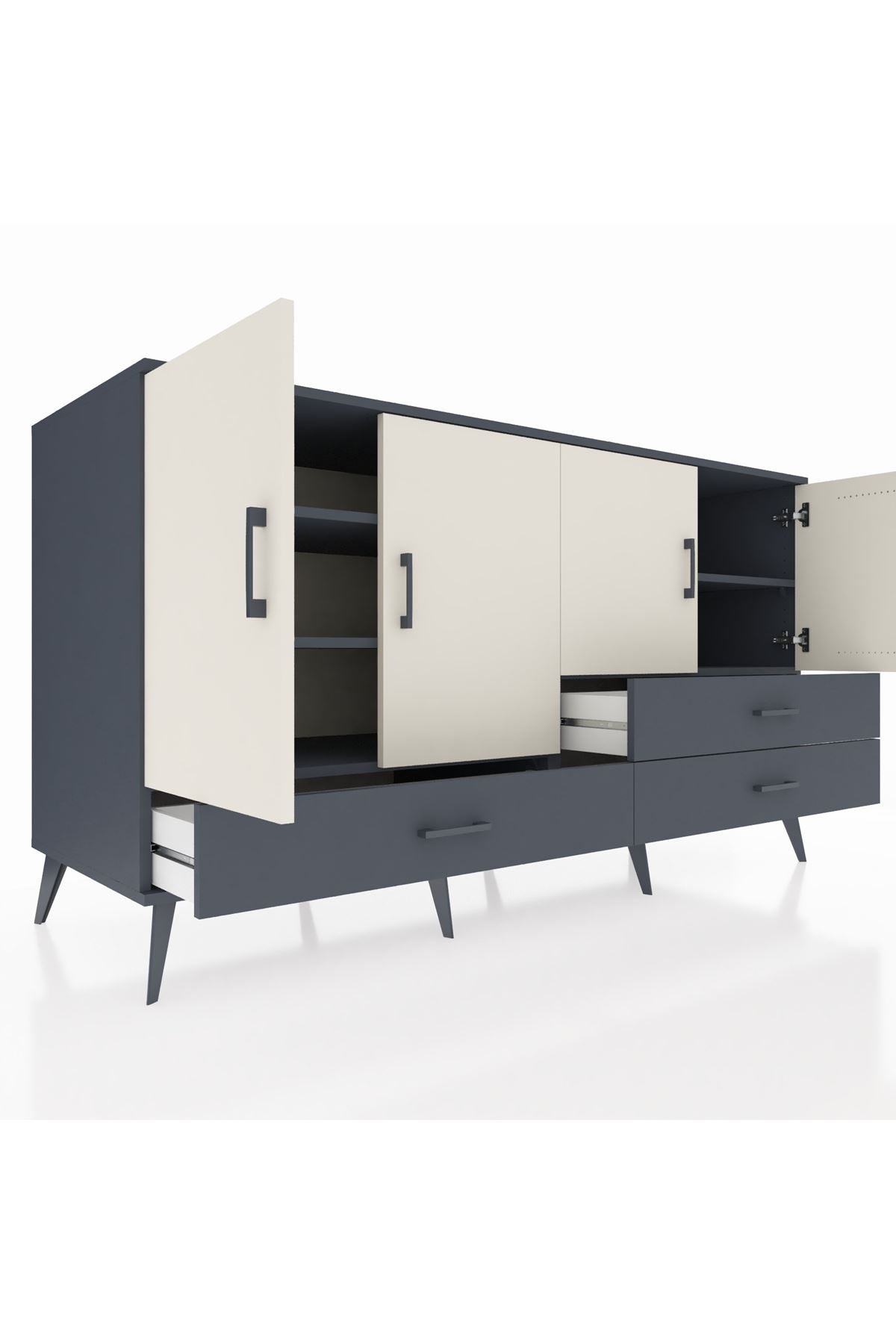 Kronos Konsol 5 Raflı 3 Çekmeceli 4 Kapaklı 176x59x99 Antrasit-Aytaşı/Antrasit
