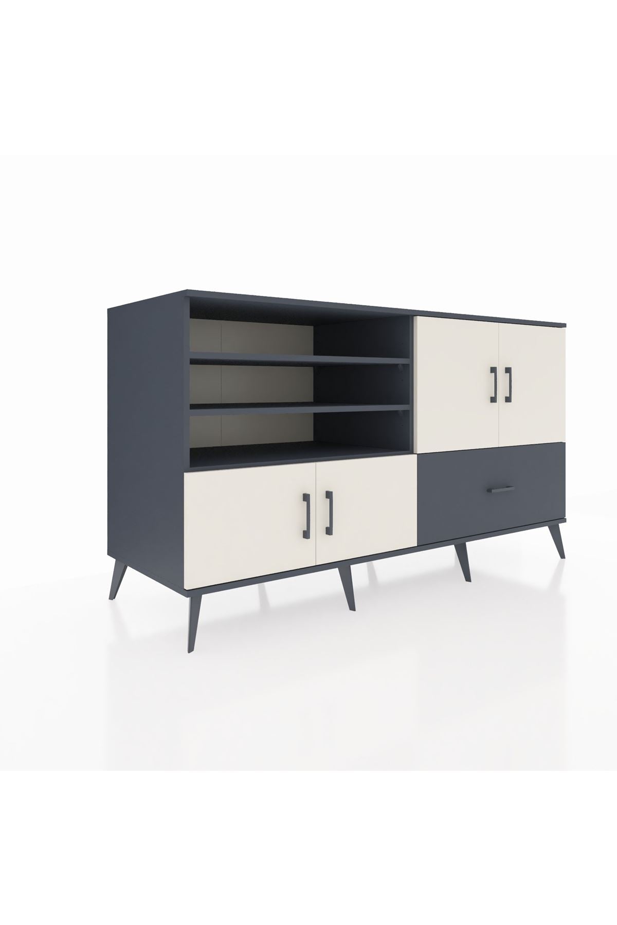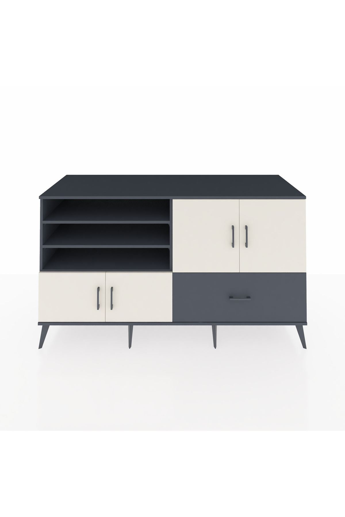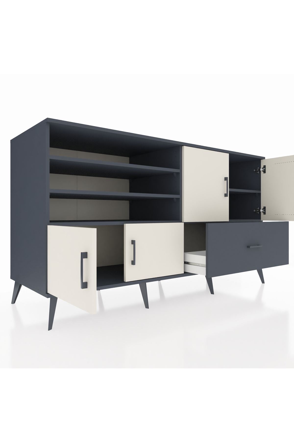 Kronos Konsol 5 Raflı Tek Çekmeceli 4 Kapaklı 176x59x99 Antrasit-Aytaşı/Antrasit