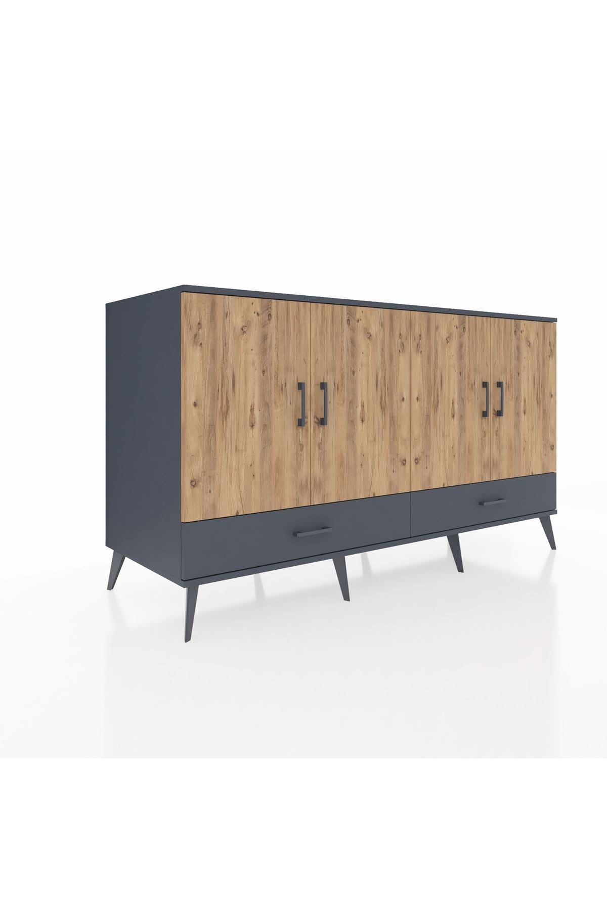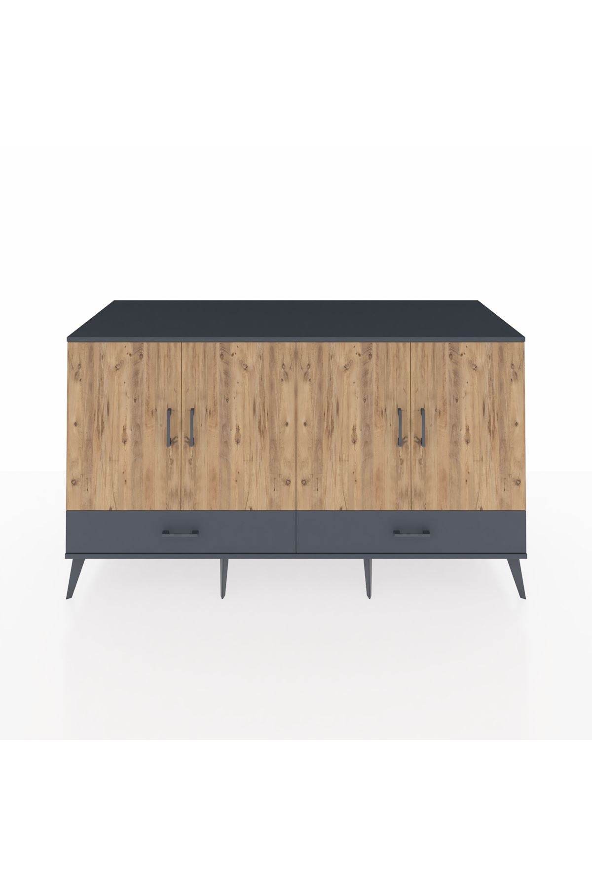 Kronos Konsol 6 Raflı 2 Çekmeceli 4 Kapaklı 176x59x99 Antrasit-Çam/Antrasit