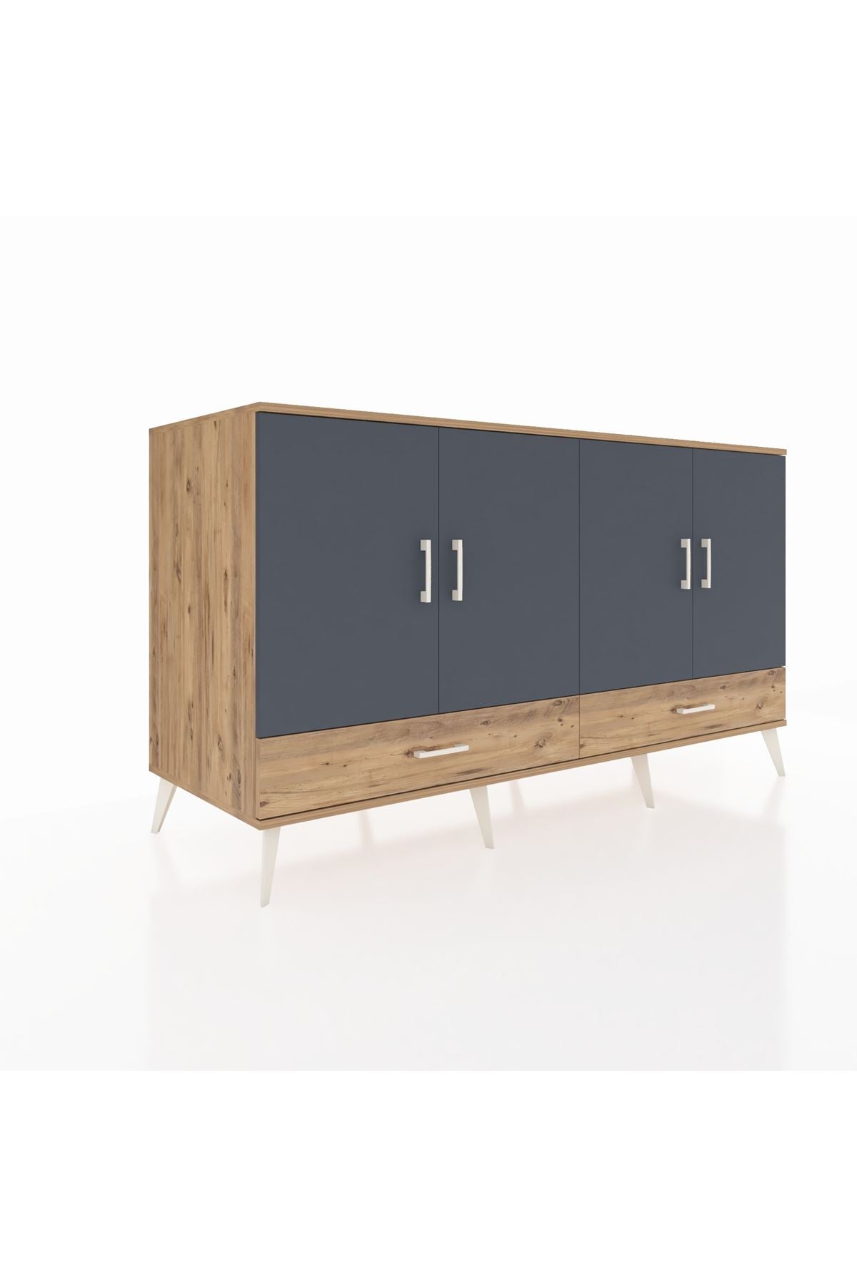 Kronos Konsol 6 Raflı 2 Çekmeceli 4 Kapaklı 176x59x99 Çam-Antrasit/Çam