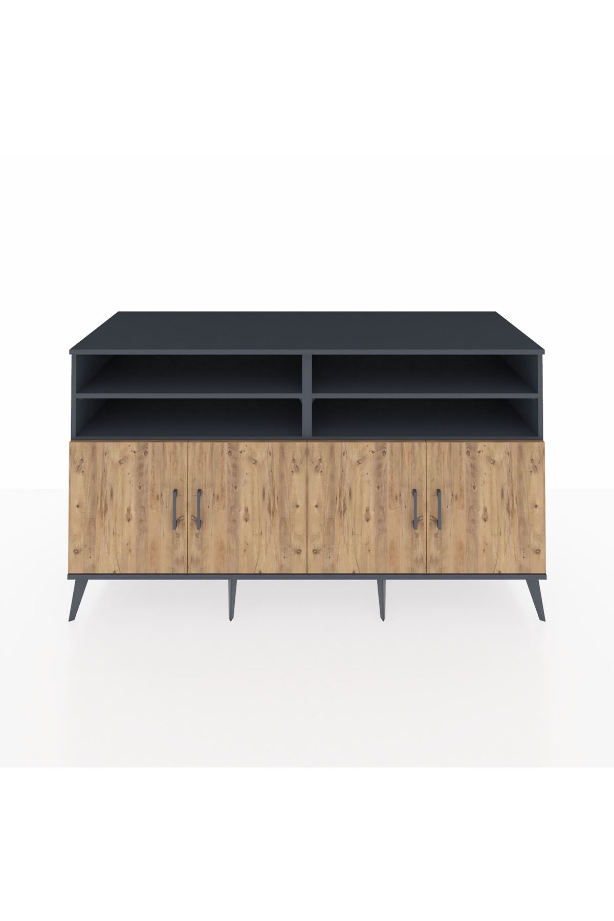 Kronos Konsol 6 Raflı 4 Kapaklı 176x59x99 Antrasit-Çam/Antrasit