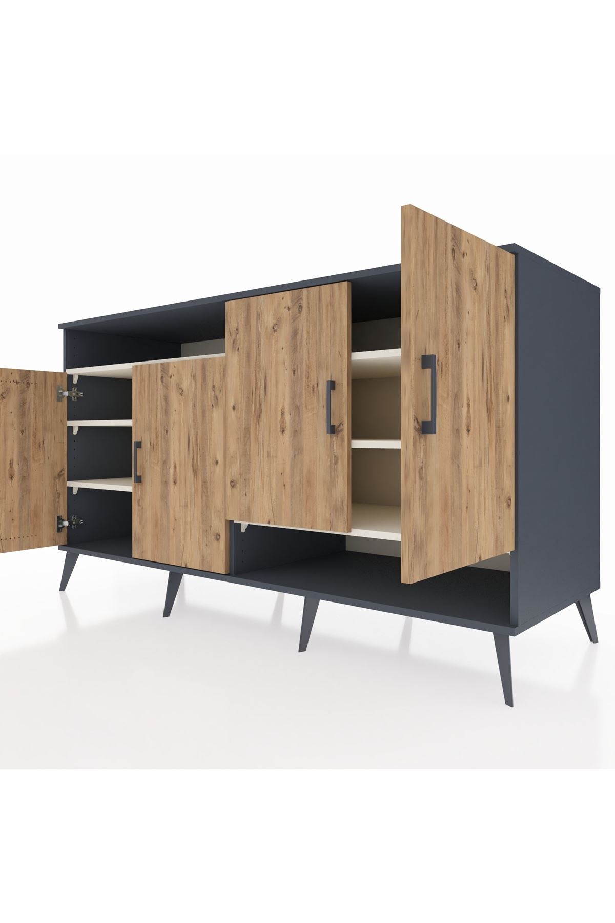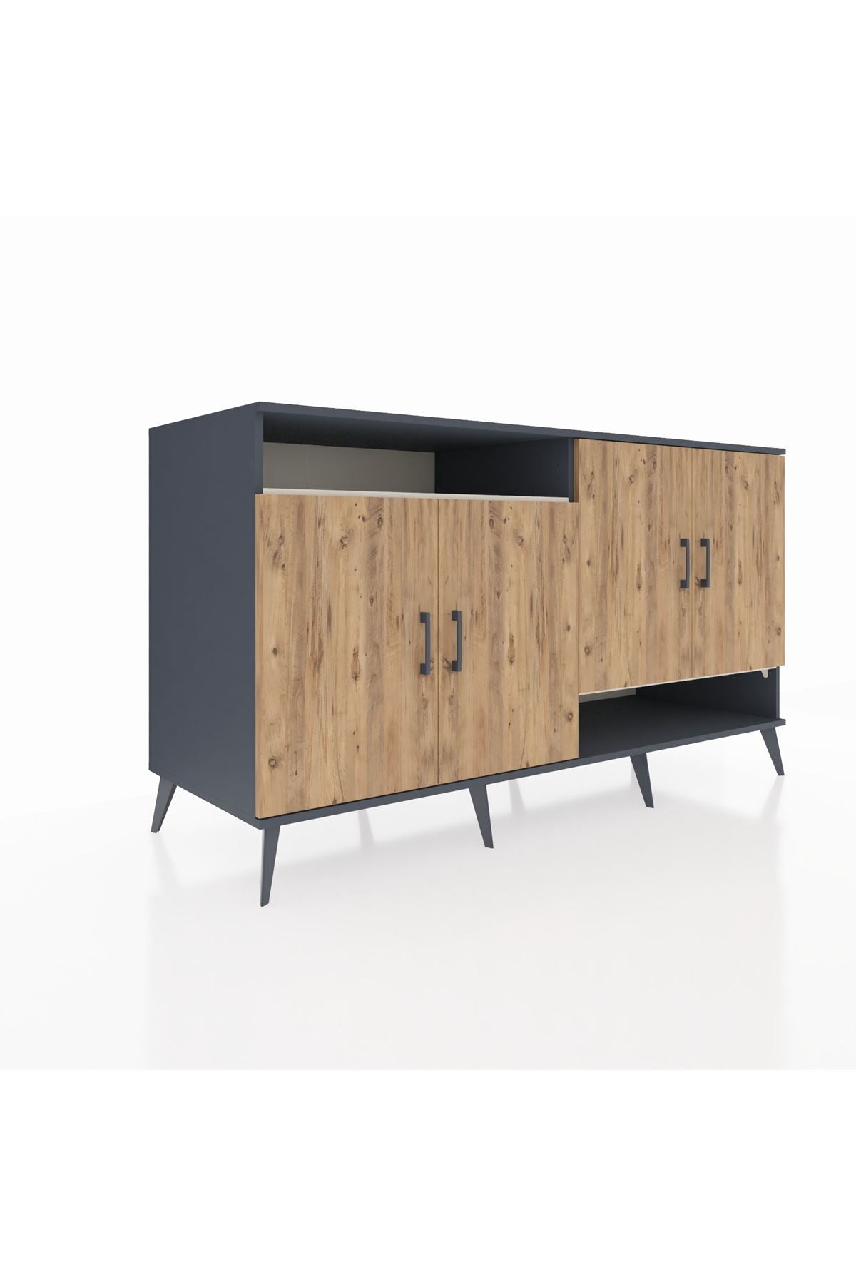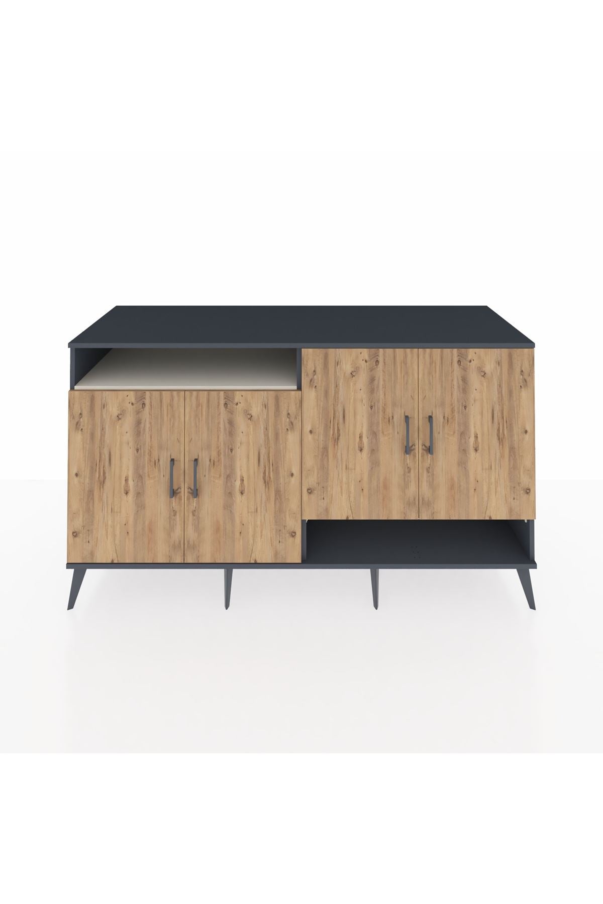 Kronos Konsol 6 Raflı 4 Kapaklı 176x59x99 Antrasit-Çam/Aytaşı