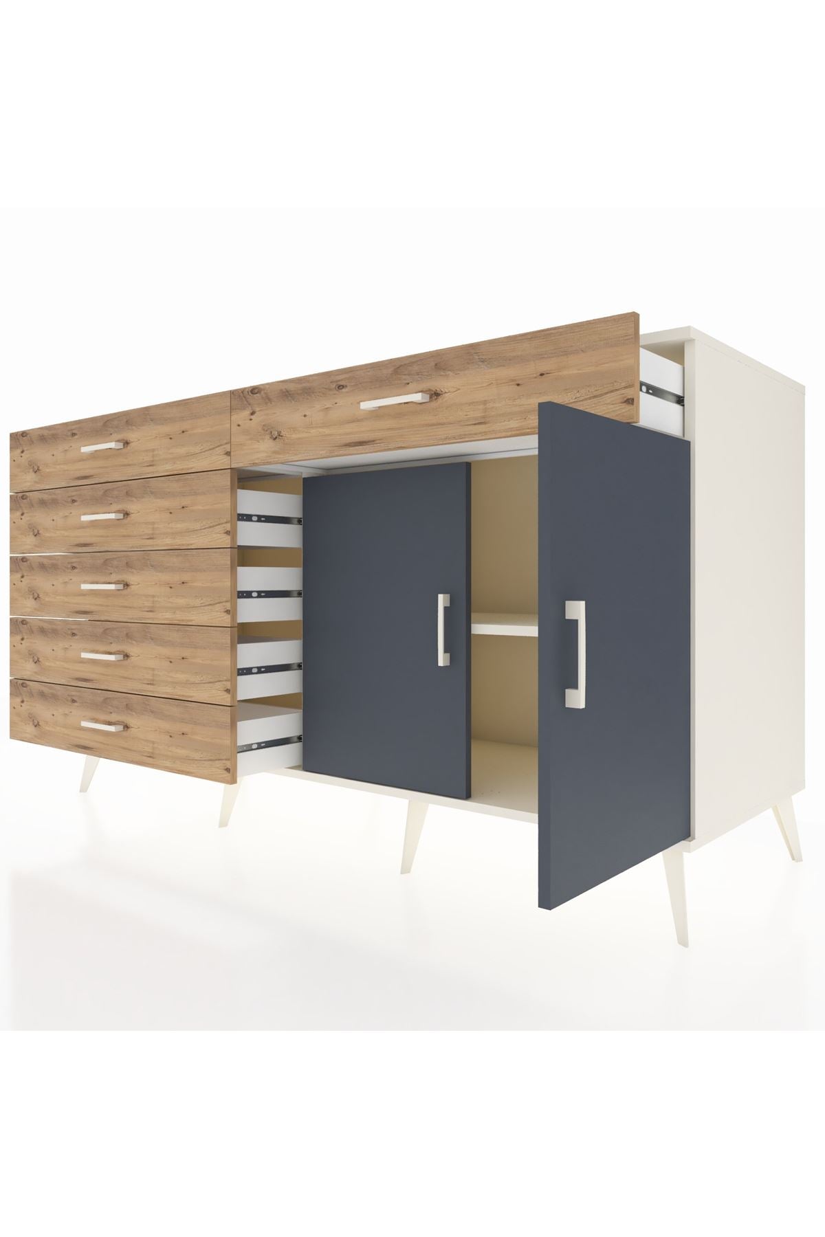 Kronos Konsol Tek Raflı 6 Çekmeceli 2 Kapaklı 176x59x99 Aytaşı-Antrasit/Çam
