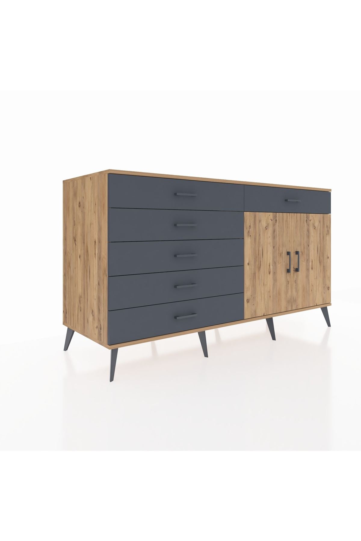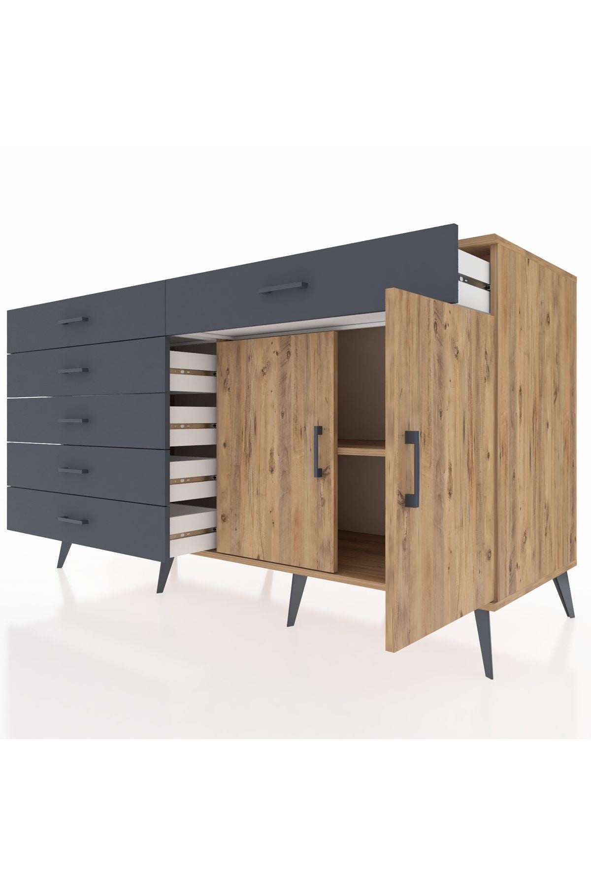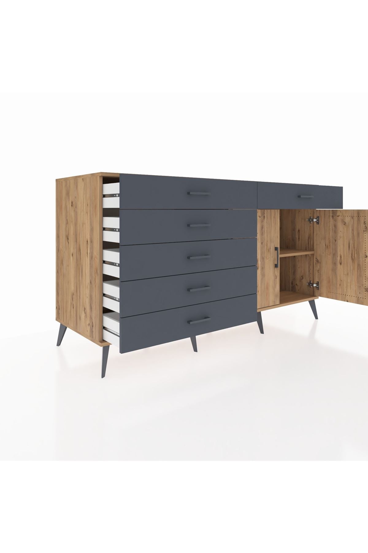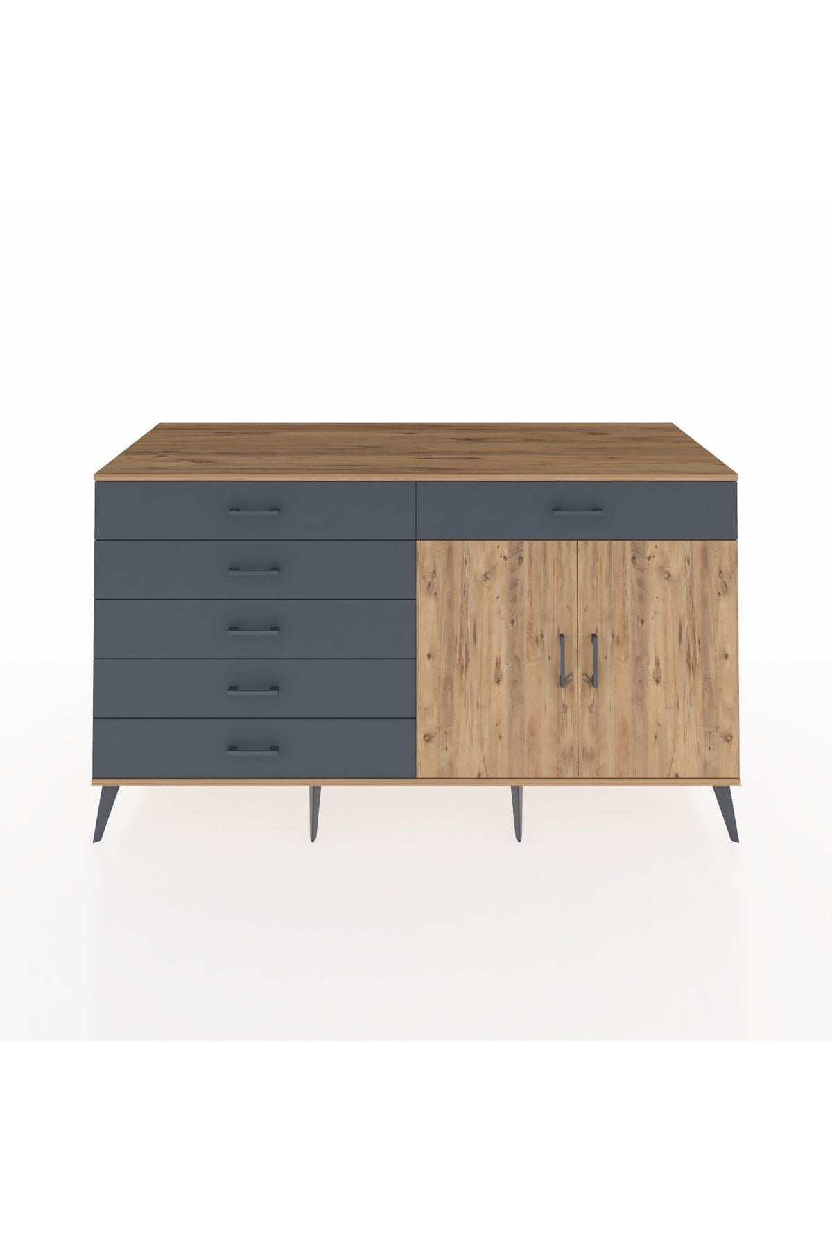 Kronos Konsol Tek Raflı 6 Çekmeceli 2 Kapaklı 176x59x99 Çam-Çam/Antrasit