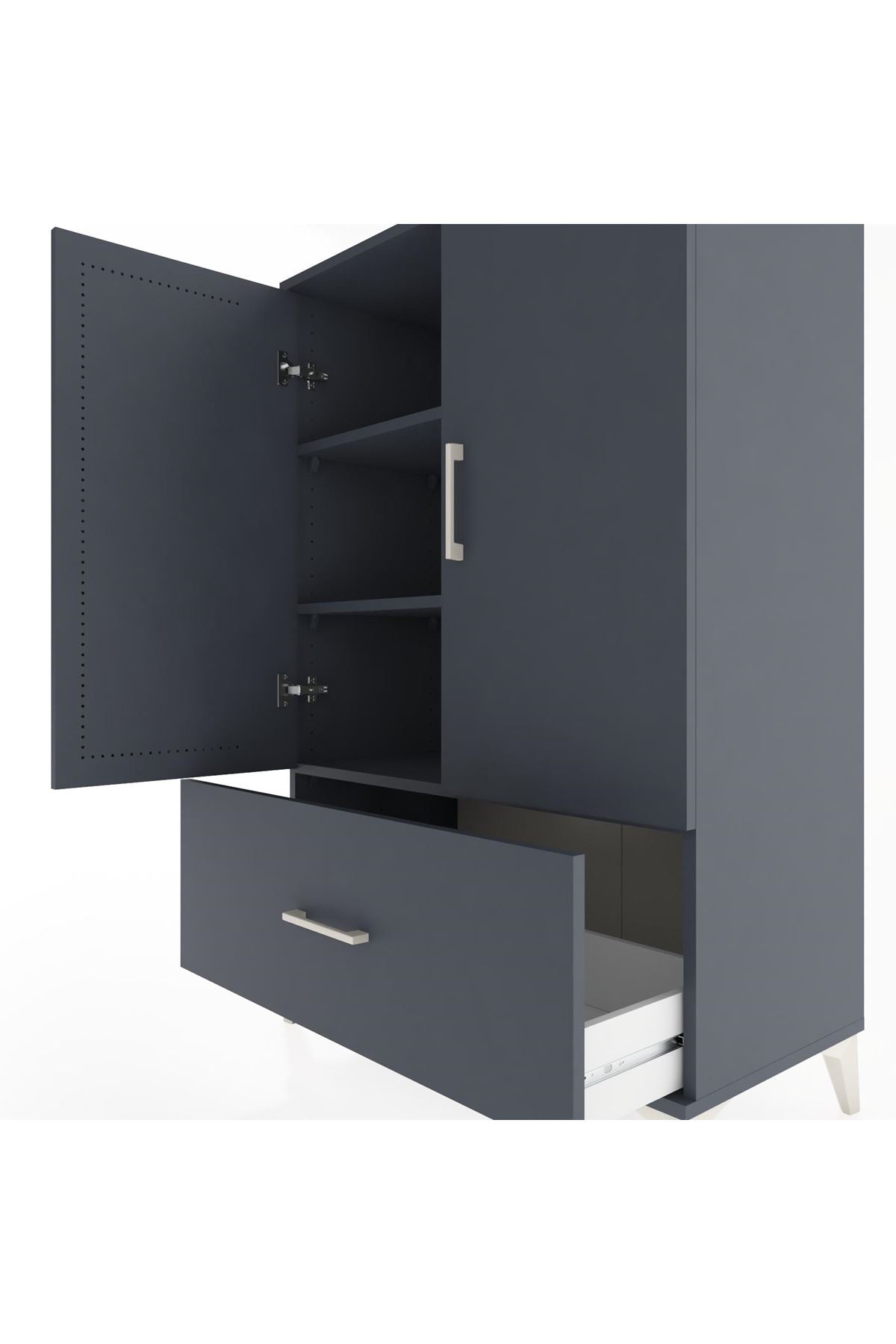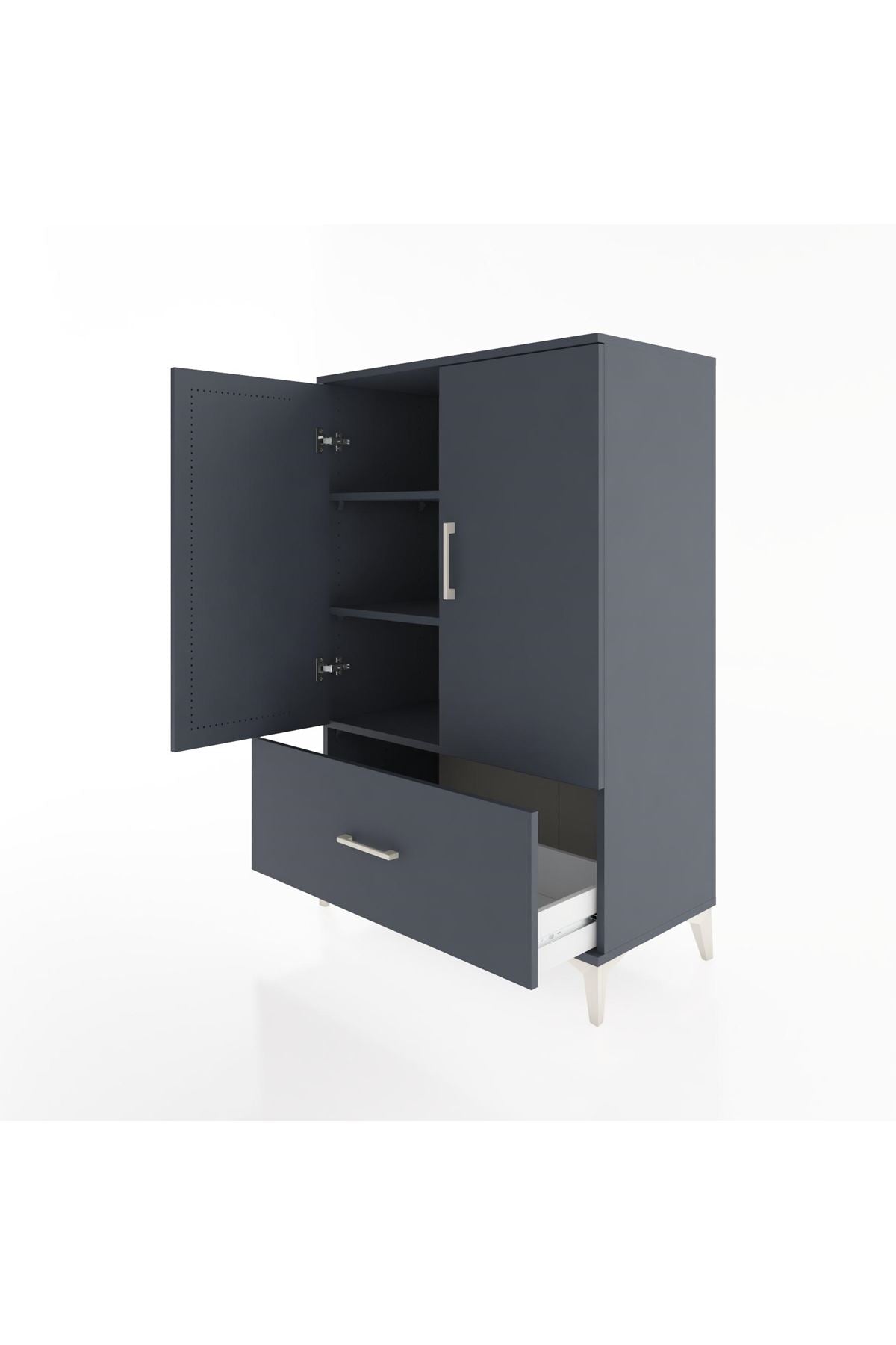 Hyperion Dolap 3 Raflı Tek Çekmeceli 2 Kapaklı 88x44x134 Antrasit-Antrasit