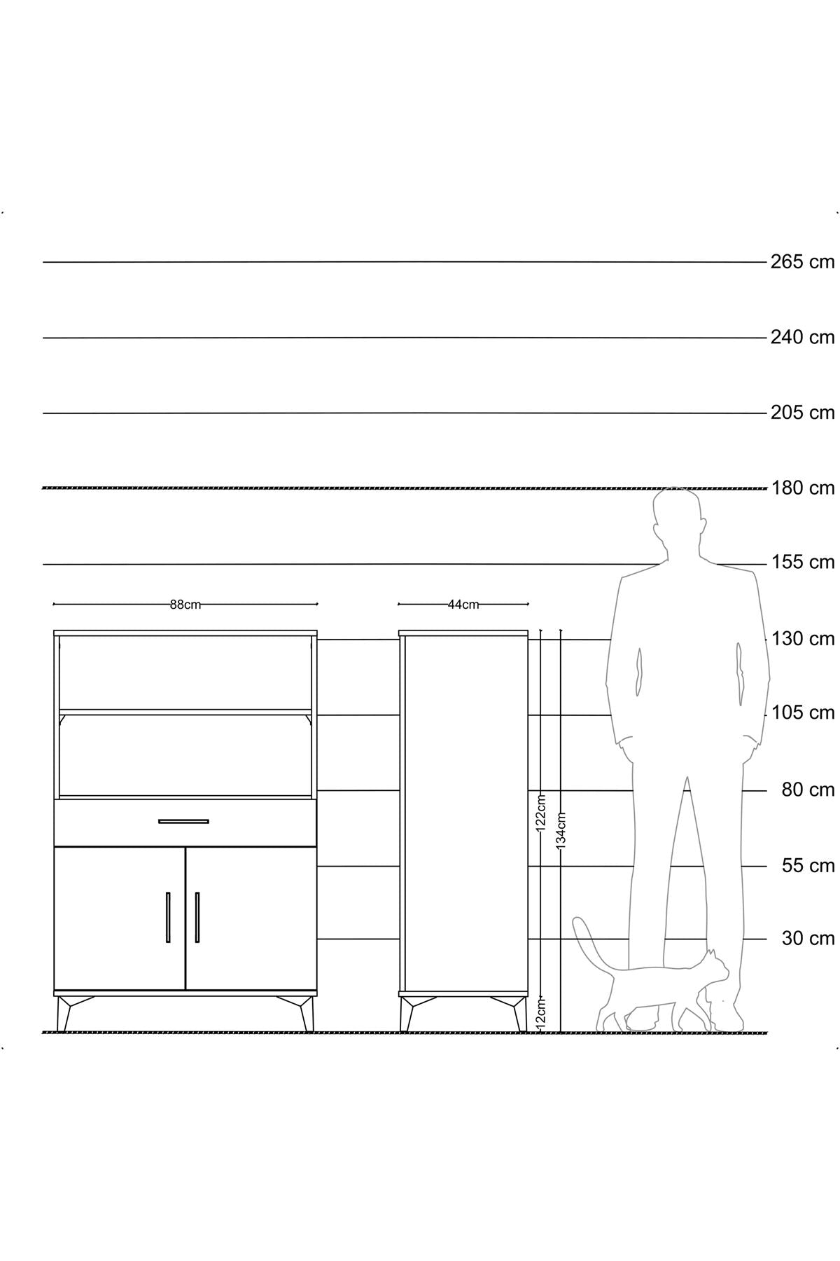Hyperion Dolap 3 Raflı Tek Çekmeceli 2 Kapaklı 88x44x134 Antrasit-Aytaşı