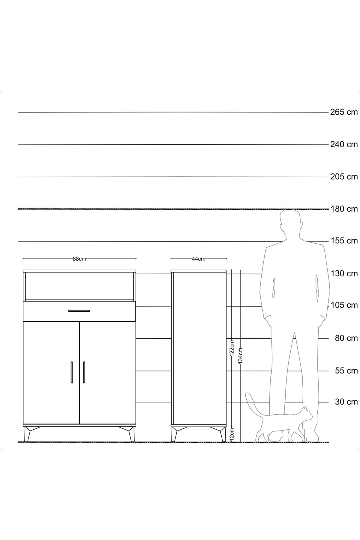 En: 88 cm x Derinlik: 44 cm x Yükseklik: 134 cm