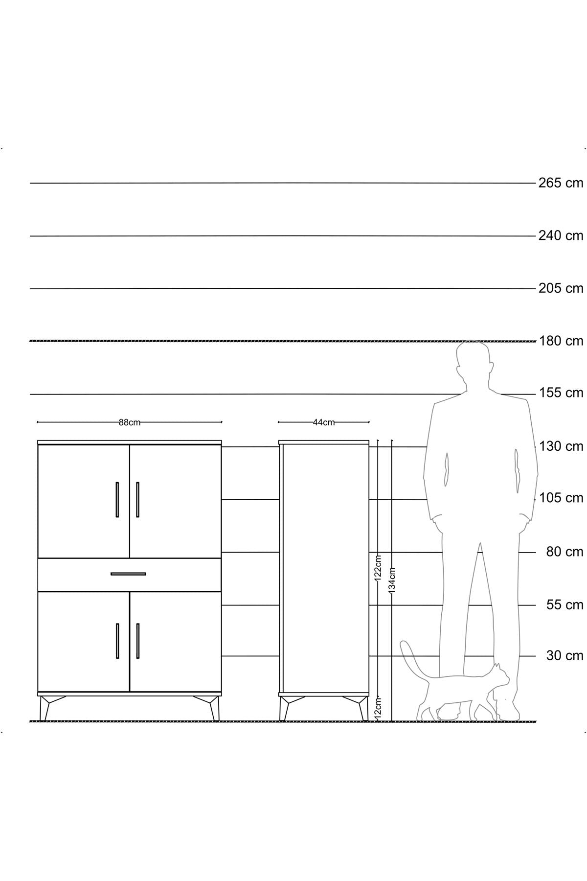 Hyperion Dolap 3 Raflı Tek Çekmeceli 4 Kapaklı 88x44x134 Çam-Aytaşı