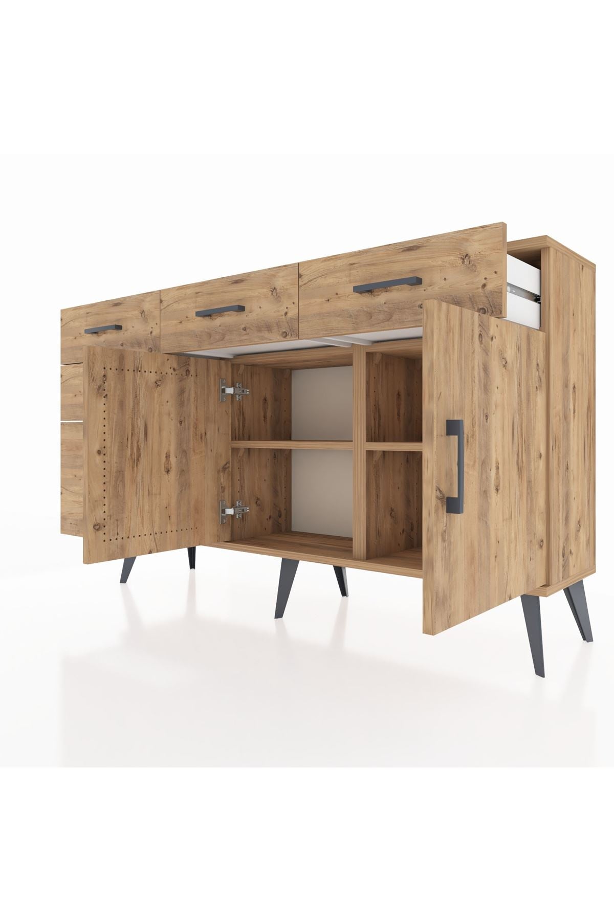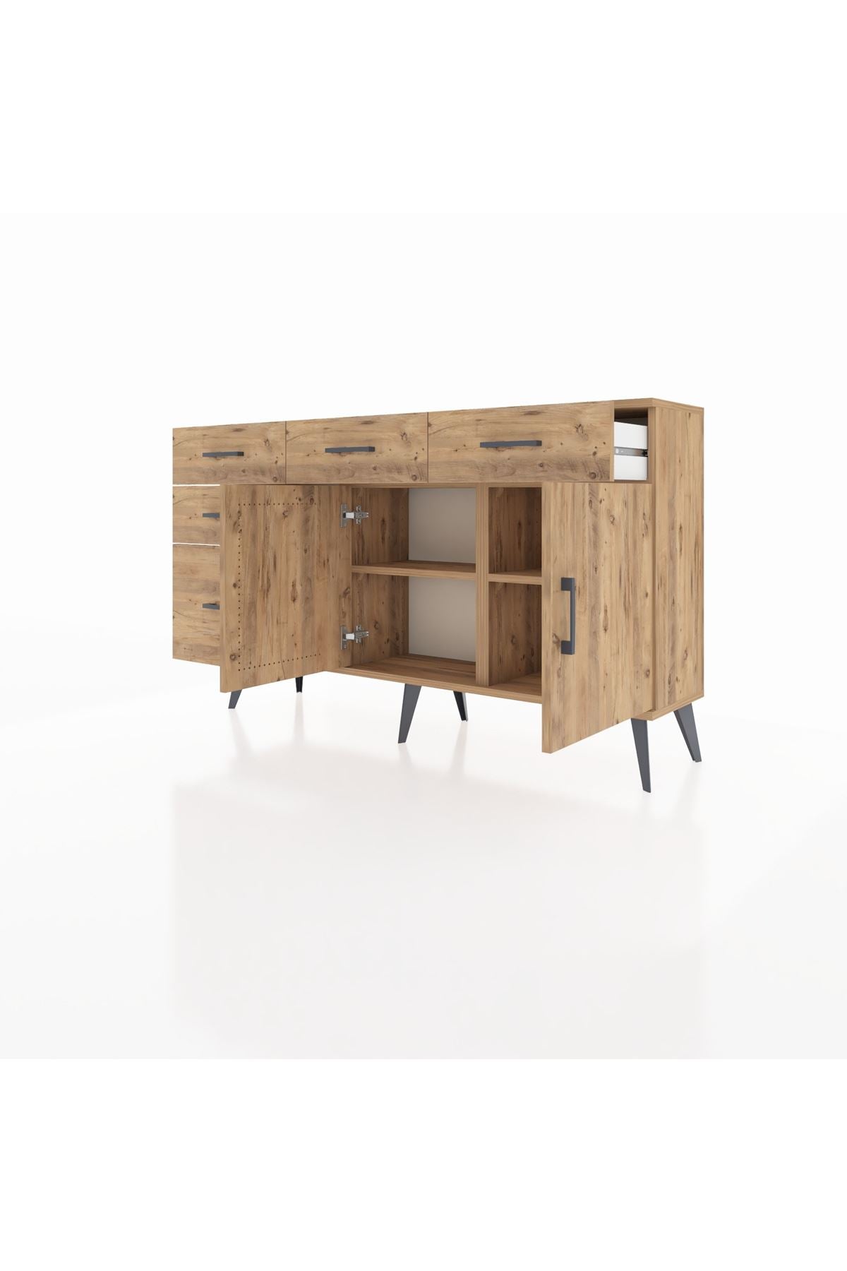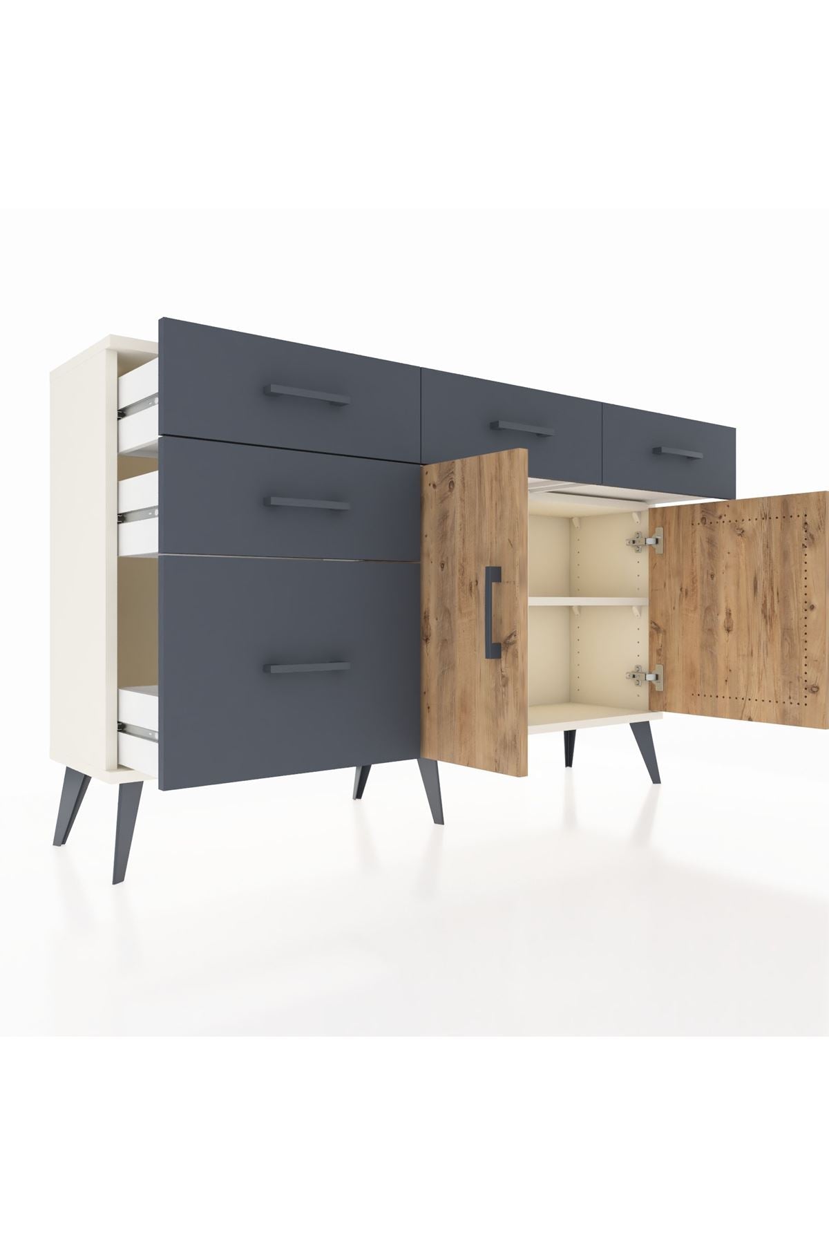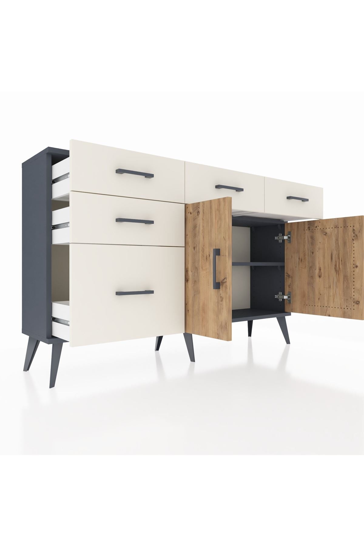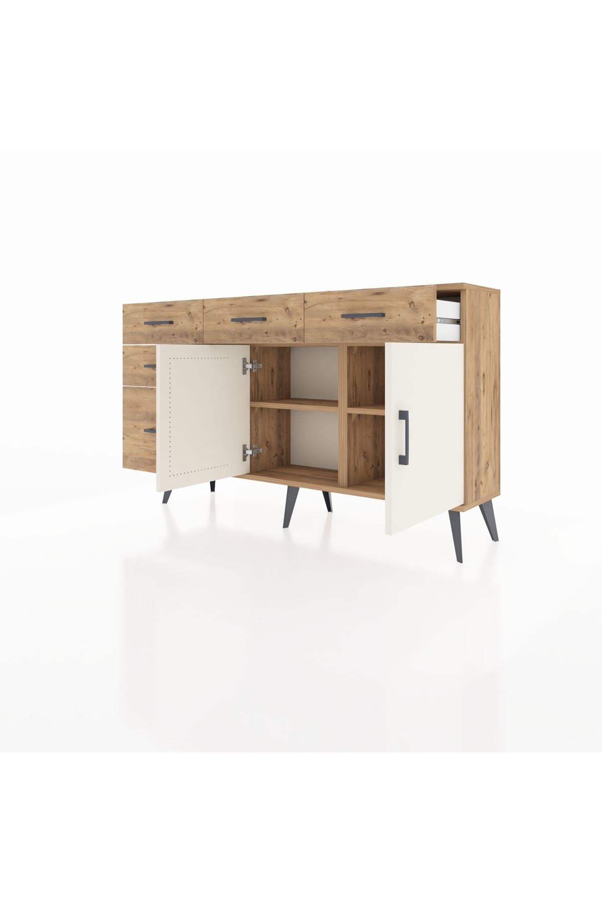 📌 Arges Konsol 2 Raflı 5 Çekmeceli 2 Kapaklı 132x30x83